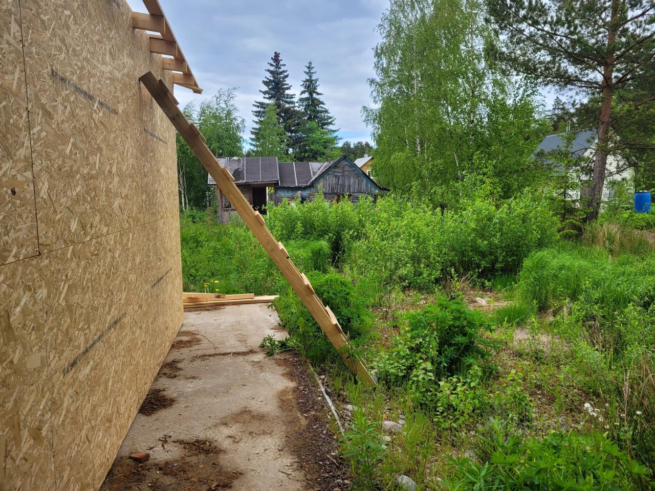 Высокий, ровный участок в уютном СНТ ''Корела'' в на окраине г. Приозерска. На участке залит монолитный фундамент-плита размером 68 кв.метров. На фундамент установлена бытовка 63,5.
