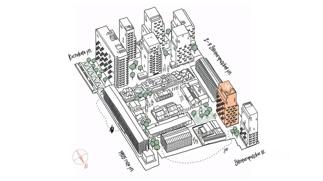 Расположение и транспортная доступность Квартал расположен на пересечении улиц 2-ая Звенигородская и Костикова, в 200 метрах от метро ''Улица 1905 года''. В непосредственной близости от парков, Москвы- реки, Сити и Садового кольца формируется идеальная среда для семейного проживания в мегаполисе.