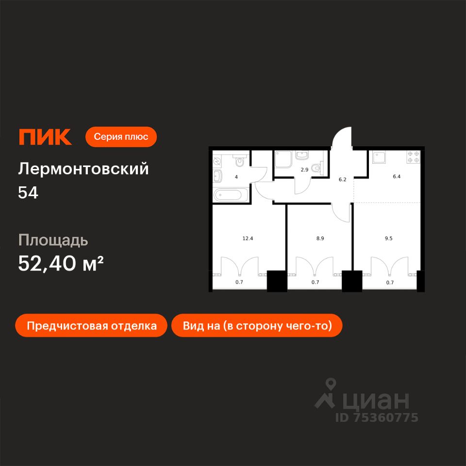 Продаётся 2-комн. квартира площадью 52,4 кв.м на 8 этаже 9 этажного дома (Корпус 1, Секция 3) проекта ПИК Лермонтовский 54. Светлый просторный подъезд на уровне земли, функциональная планировка, большие окна, предчистовая отделка.