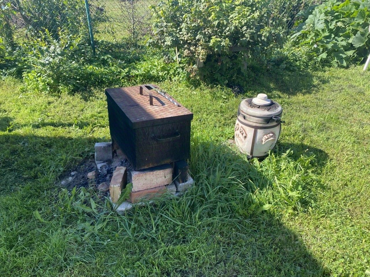 На участке расположены баня, беседка, сарай, мангальная зона, теплица, летний бассейн, а также много деревьев и ягодных кустов. Участок находится в собственности, имеет дренаж, размежеван и огорожен со всех сторон забором с коваными воротами.