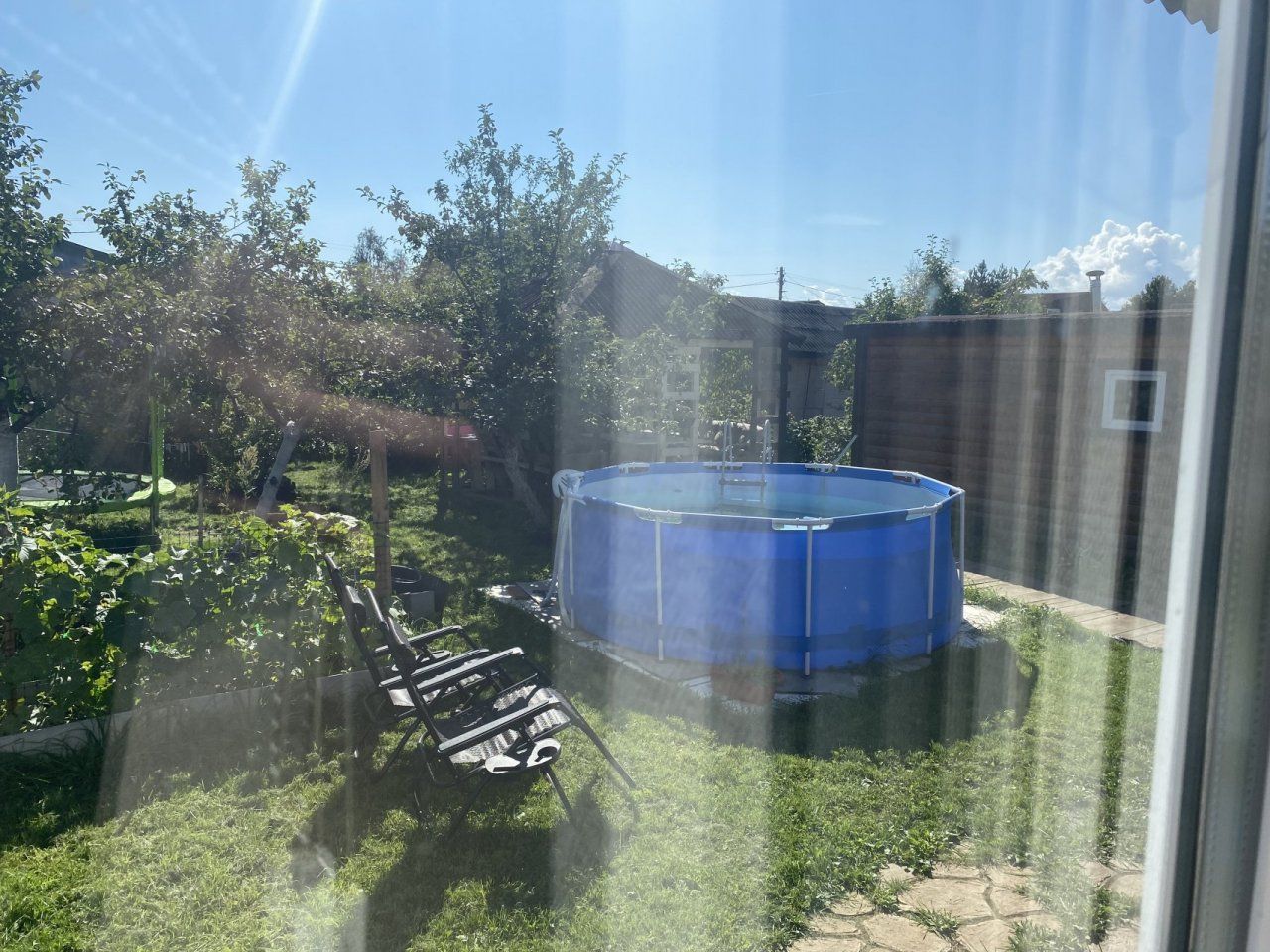 На участке расположены баня, беседка, сарай, мангальная зона, теплица, летний бассейн, а также много деревьев и ягодных кустов.