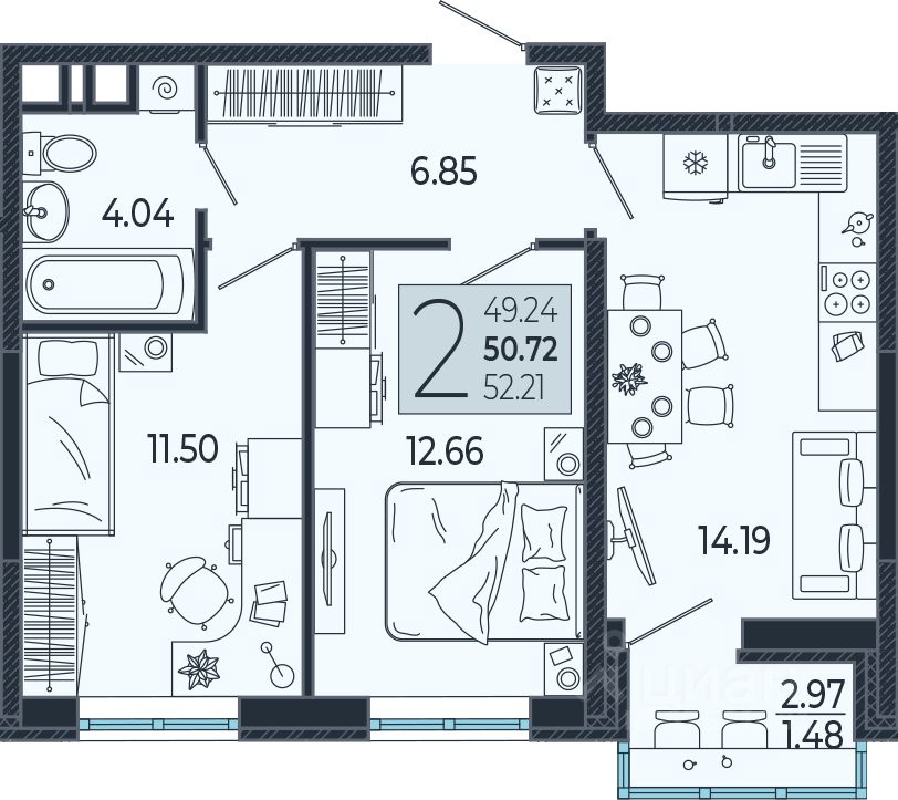 Продаётся 2 -комнатная квартира площадью 50,72 кв. м на 21 этаже в новом современном комплексе комфорт-класса от строительной компании ''КОНТИНЕНТ ГРУПП'' в одном из самых быстроразвивающихся районов города.