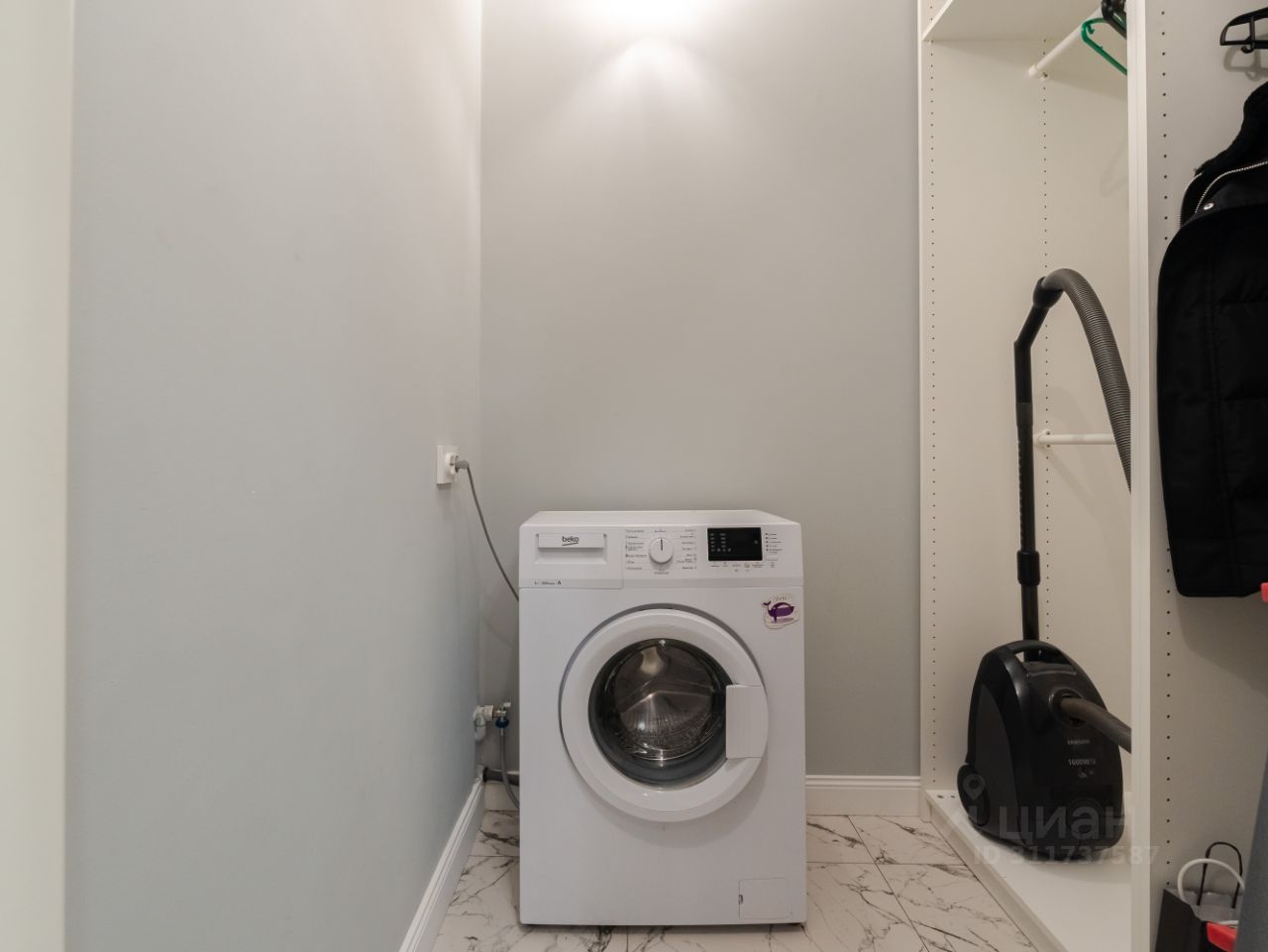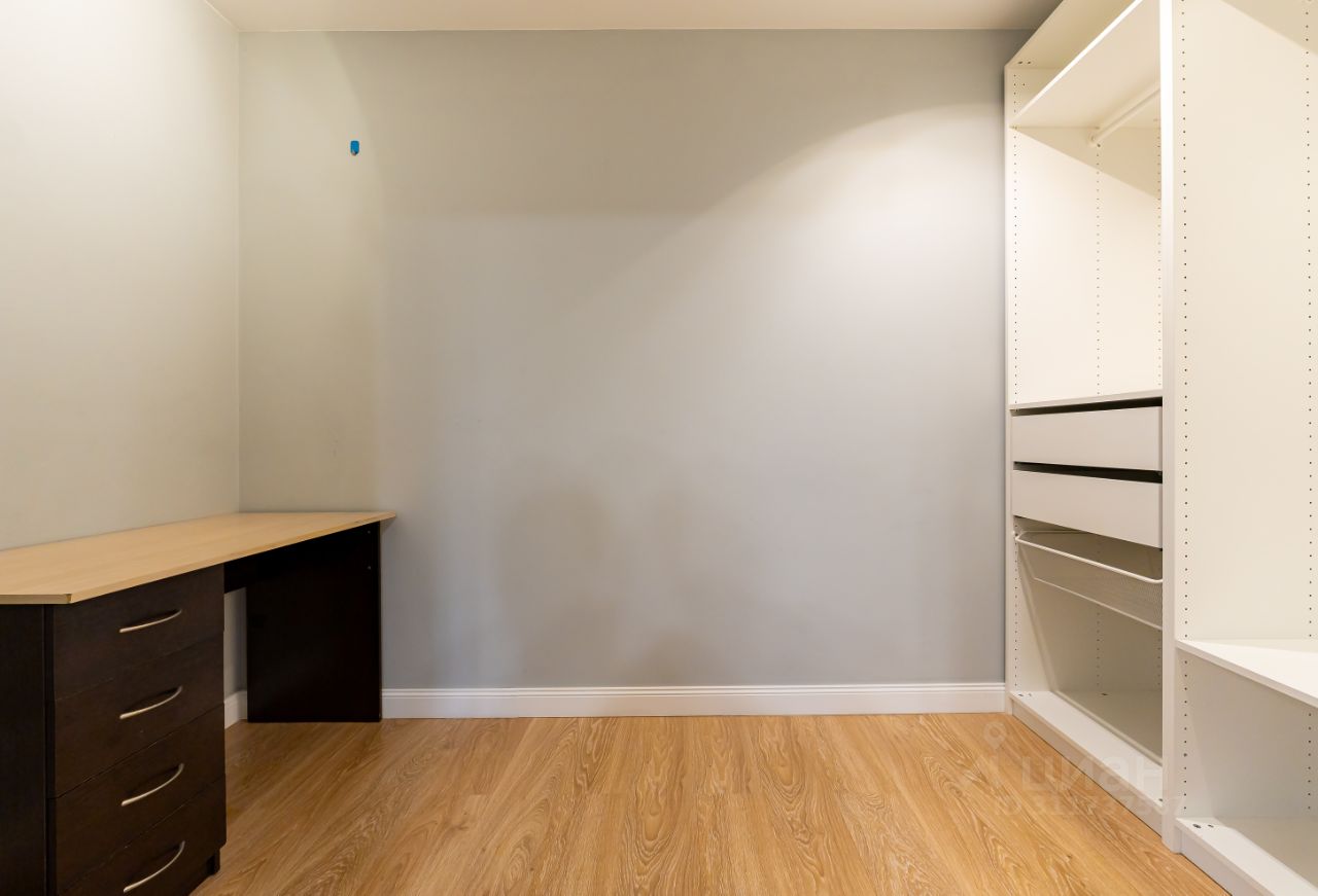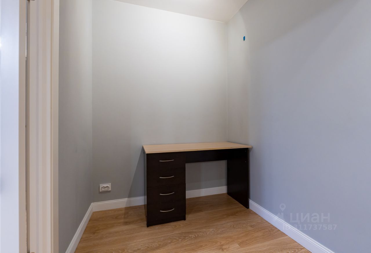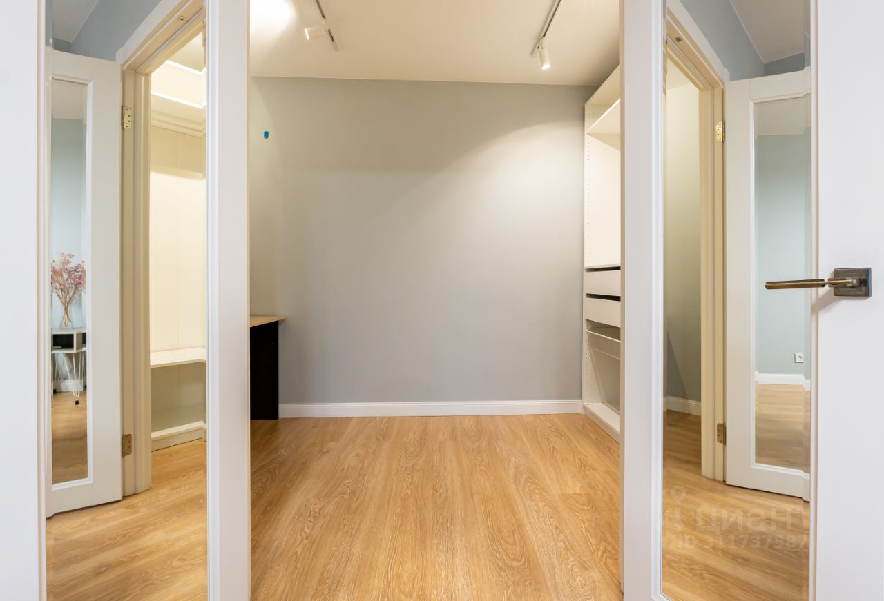 Квартира в отличном состоянии, выполнен качественный ремонт в светлых тонах. По планировке просторная спальная комната 18,5 метров, смежная с маленькой комнатой 6,5 метров, из которой можно сделать или вторую гардеробную или кабинет. Отдельная кухня с выходом на застекленную лоджию, раздельный санузел с ванной, гардеробная комната при входе в квартиру. Есть вся необходимая мебель и бытовая техника.