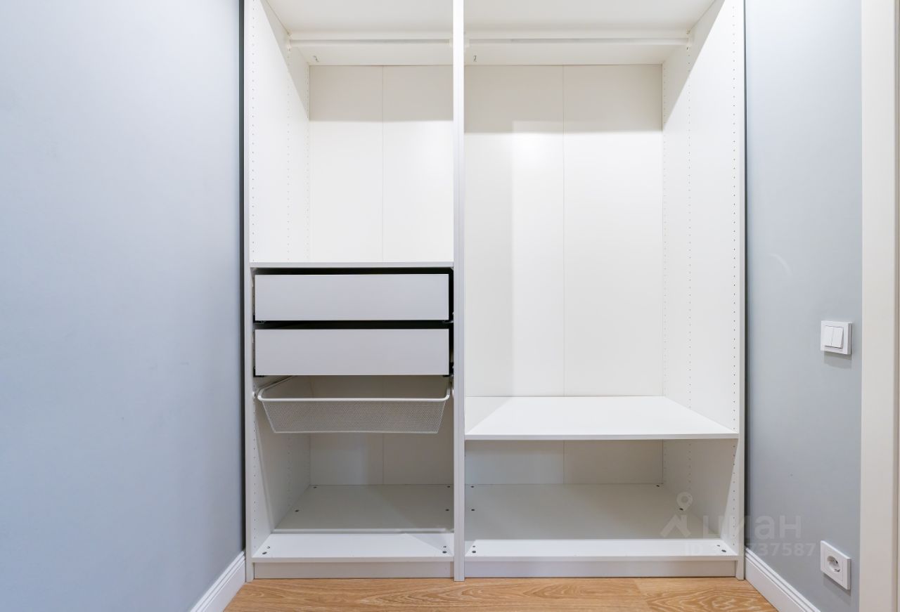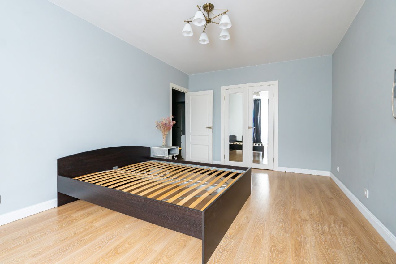 Квартира в отличном состоянии, выполнен качественный ремонт в светлых тонах. По планировке просторная спальная комната 18,5 метров, смежная с маленькой комнатой 6,5 метров, из которой можно сделать или вторую гардеробную или кабинет. Отдельная кухня с выходом на застекленную лоджию, раздельный санузел с ванной, гардеробная комната при входе в квартиру. Есть вся необходимая мебель и бытовая техника. НОВАЯ КРОВАТЬ И МАТРАС средней жесткости, на фото еще не успел попасть, но к нашей с вами встрече уже будет установлен)