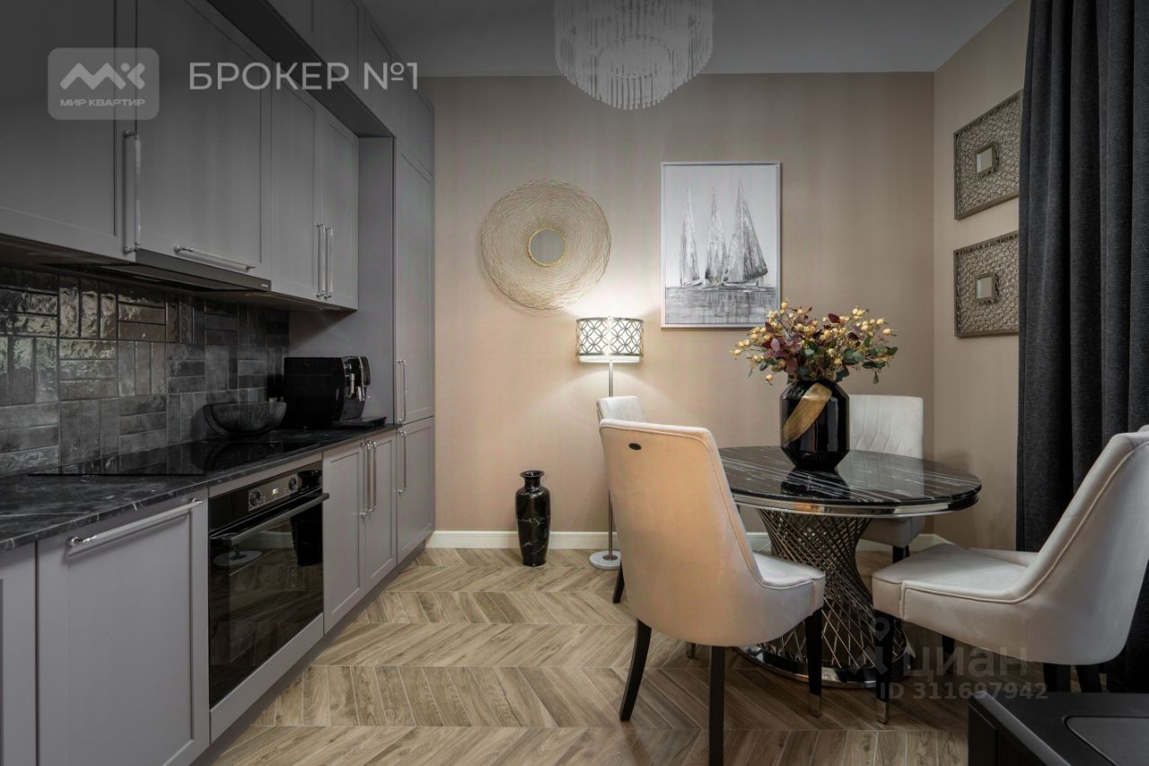 В квартире площадью 45м2 выполнен дизайнерский ремонт с использованием премиум-материалов. Продуман каждый квадратный сантиметр пространства. Сердце квартиры уютная кухня-гостиная, которая включает в себя кухонную и столовую зоны, а также зону отдыха с выходом на балкон с панорамными окнами. Большая комната разделена на 2 пространства: зону кабинета и зону спальни, есть отдельный гардероб. Отдельное внимание стоит уделить деталям квартиры: красивые люстры, тяжелые светильники, премиальная кухня, мебель кабинета. В наличии и можно приобрести удобное парковочное место для автомобиля в подземном паркинге рядом с парадной .