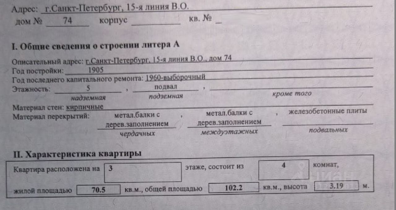 продам 4-к, 15-я В.О. линия, 7415 500 000 ₽