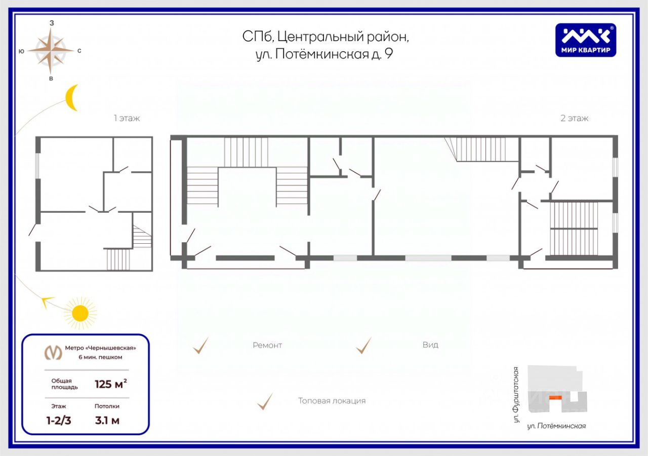 Арт. 77605468 Предлагаем в аренду эксклюзивное помещение свободного назначения. Потемкинская улица дом на пересечении с Фурштатской улицы, отдельный вход на против Тарического сада. Два этажа. Общая площадь 125 м.кв. Высокие потолки - 4.2 метра, три изолированных кабинета, один проходной зал. Дизайнерский ремонт из дорогих и эксклюзивных материалов стиль ближе к дворцовму. Максимально полезная рабочая площадь, нет коридоров. Идеально подходит под представительский офис, шоурум. Последний Арендатор ''Австрийская школа этикета'' От станции метро Чернышевская 5 минут пешком, рядом центральный ЗАГС. Одно парковочное место во дворе. Рассмотрим любые предложения.