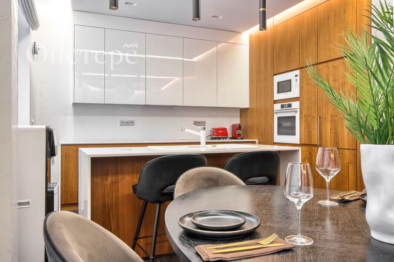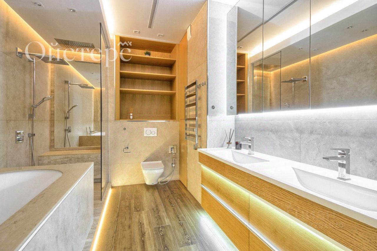 В отделке использованы дубовый паркет и марокканская штукатурка, полностью заменены все коммуникации и выполнена идеальная шумоизоляция. Абсолютно новая мебель и техника без амортизации остаются новому владельцу.