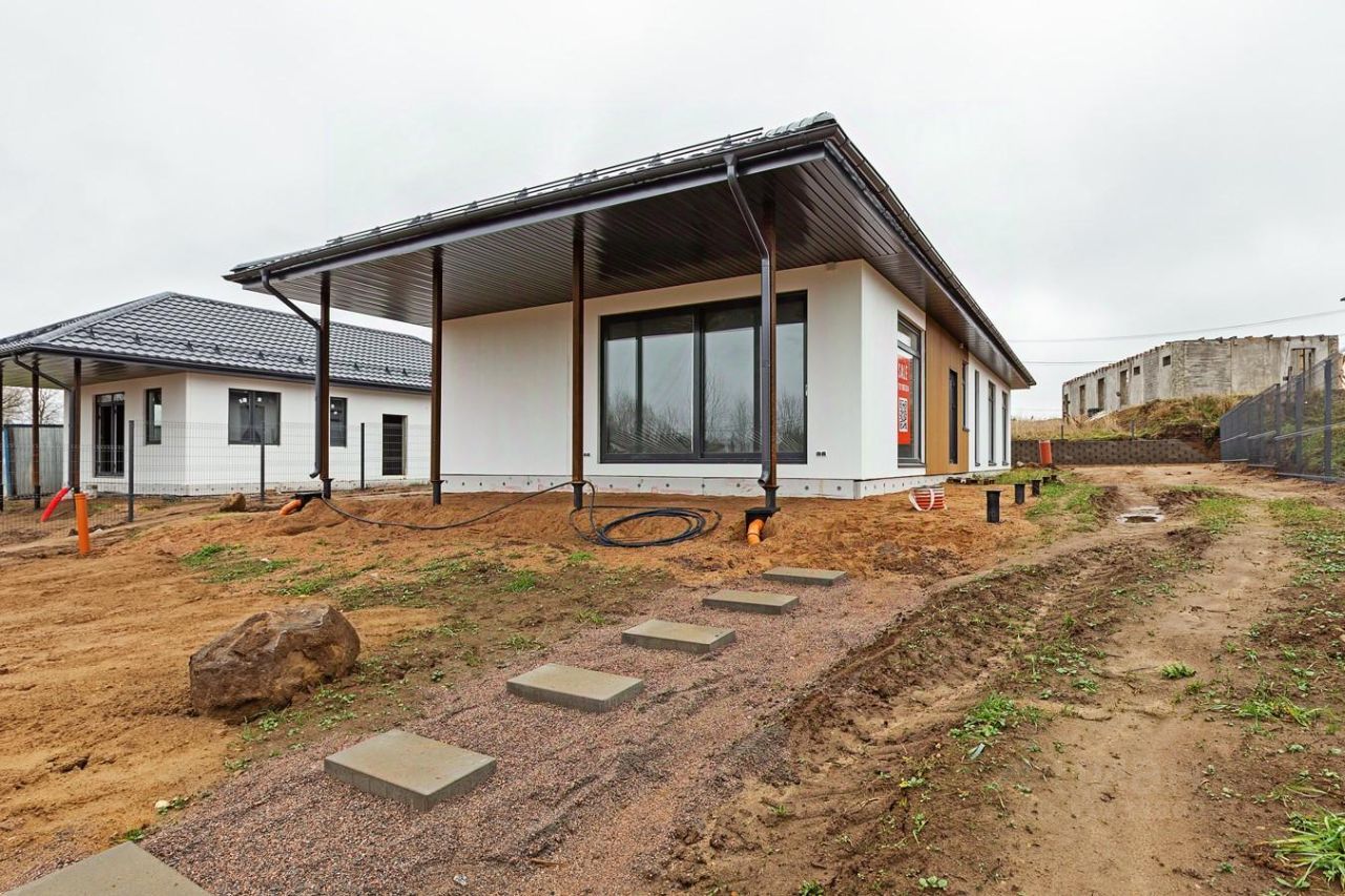 Разрабатывали планировку и ландшафтный дизайн как для себя. Все что нужно для жизни уместили эргономично в 139 м2 без террасы. Монолитный дoм из утеплённыx ЖБИ пaнeлей с отделкой white box. - Теплые полы - Разводка электричества в соответствии с проектом - Все коммуникации в доме, газ по границе участка - Максимально подготовлен для чистовой отделки - Выполнена подготовка для ландшафтного дизайна - парковочное место из плитки на 2 м.м.