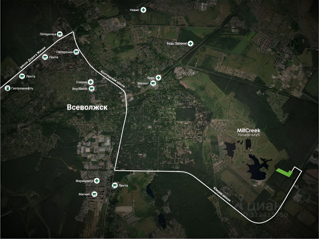Участок находится в непосредственной близости к городу - всего в 30 мин езды от КАД. От участка до центра г. Всеволожск 10 мин езды, там же находится все необходимая инфраструктура: продуктовые магазины, гипермаркеты, аптеки, школы и детские сады. Ближайшая ст.м. Ладожская в 40 мин езды на автомобиле.