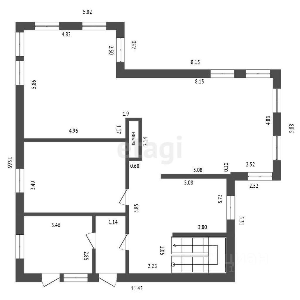 Чистовая отделка частично выполнена, и при желании легко, может быть, как доделана, так и переделана заново. Все помещения правильной формы с большим количеством окон, что дает много света. В гостиной есть камин и дровяная печь для дополнительного отопления или экономии газа в межсезонье.