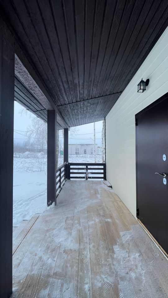 -Каркас сухая доска: стены, пол, потолок 200 мм утеплены каменная вата. -Фундамент: винтовые сваи (в том числе терраса и рама крыльца) -Окна Rehau 70 профиль -Кровля трёхслойная мягкая черепица -Терраса лиственица