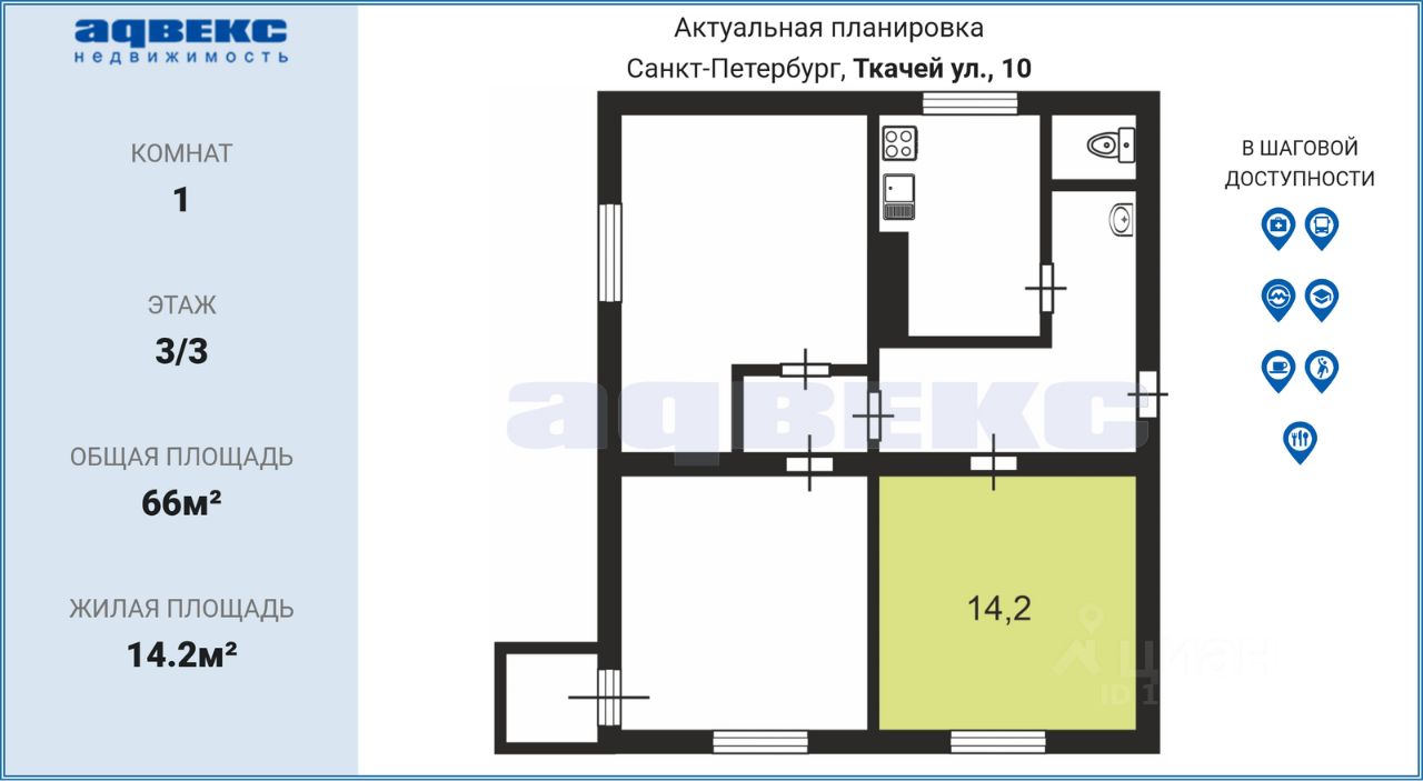 В продаже просторная светлая комната, правильной формы, с хорошим ремонтом в 3-х комнатной малонаселённой квартире.