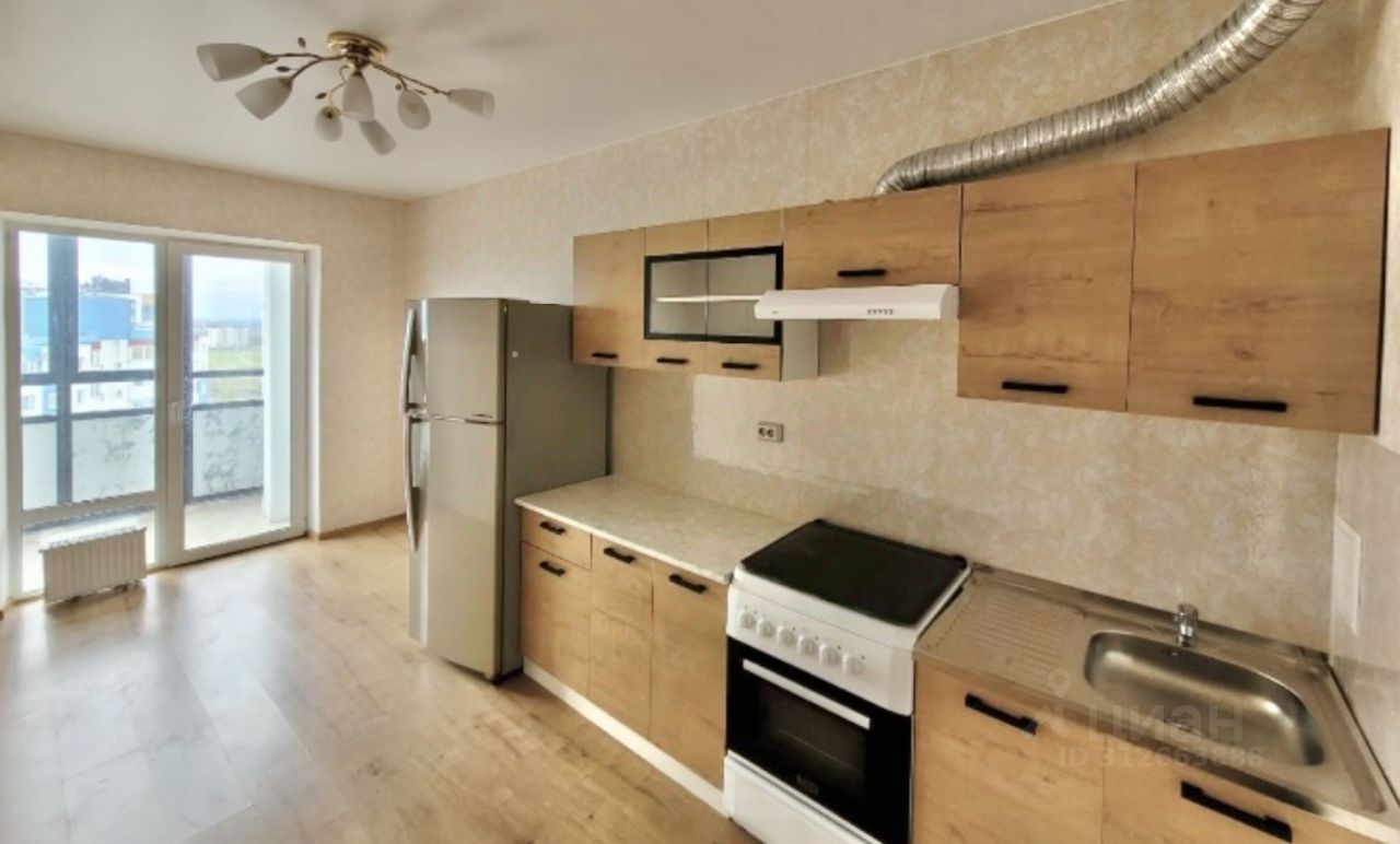 За объект уже внесли аванс Предлагаем в аренду на длительный срок просторную, тёплую и светлую однокомнатную квартиру в новом доме с высокими потолками и хорошим видом из окон. Общая площадь квартиры 40,3 кв.м, площадь комнаты 17,5 кв.м, а кухни -13,7 кв.метра. Комната и кухня — правильный формы, нет никаких скошенных углов. Совмещенный санузел легко вмещает унитаз, ванну 160 см и стиральную машину-автомат, при этом все равно выглядит просторным. Из кухни — выход на застекленную, квадратную лоджию, площадью 2,8 м, которую в теплое время года можно использовать как летнюю комнату. Квартира сдается с бытовой техникой (есть стиральная машина-автомат, двухкамерный холодильник и электрическая плита).