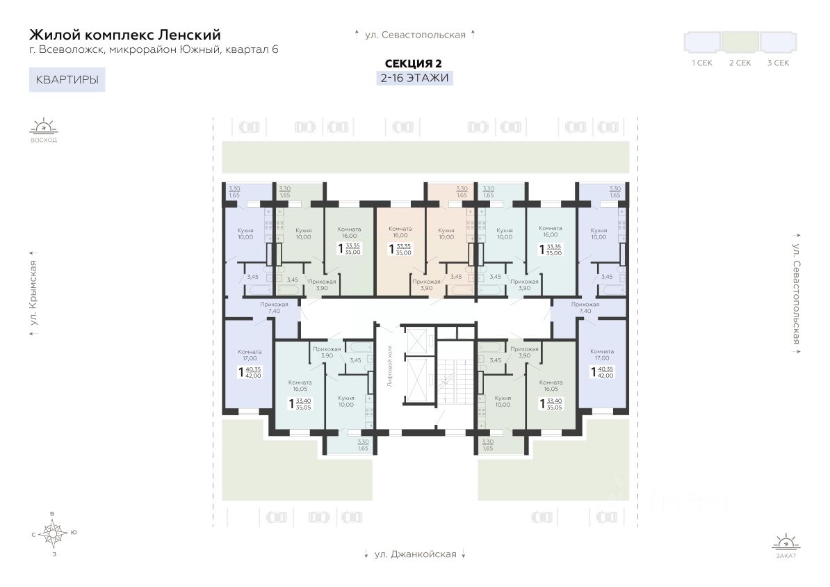 Продаётся 1-комнатная квартира в строящемся доме (5 позиция), срок сдачи: IV-кв. 2026, общей площадью 42 кв.м., на 8 этаже. Новый жилой комплекс ''Ленский'' от застройщика ''ГК Развитие'' расположен по адресу город Всеволожск, Севастопольская улица.