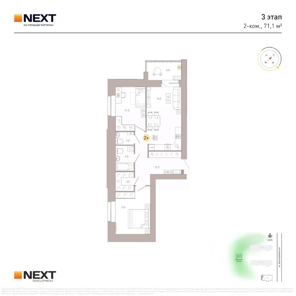 Преимущества жизни в ЖК NEXT на Площади Партизан: - Кирпичные дома - Близость естественного природного массива - Развитая инфраструктура - Удобная транспортная доступность - Авторские планировки - Индивидуальное отопление - Встроенная система ''тёплый пол'' - Отапливаемая лоджия с панорамным остеклением - Высота потолков от 2,7 до 3 м. - В квартирах предусмотрены кухни-гостиные, ниши для шкафов, гардеробные, мастер-спальни.