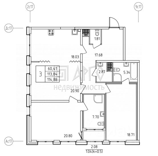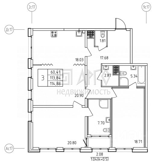 Комфортабельные комнаты правильной формы (20,9/20,8/18,7 кв.м) с собственными санузлами. Кухня 18,03 кв.м. Лоджия площадью 1,04 кв. м. Продуманная планировка квартиры обеспечит максимальное удобство для вашей семьи, предоставляя личное пространство каждому.
