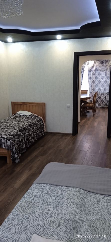 Сдается посуточно просторная квартира, в которой 4 изолированные комнаты и одна большая гостиная столовая плюс кухня. в каждой комнате есть спальные места, а именно четыре односпальные кровати , одна полутора спальная кровать, один двуспальный диван кровать Икеа монстад. всего можно разместить до 8 человек.
