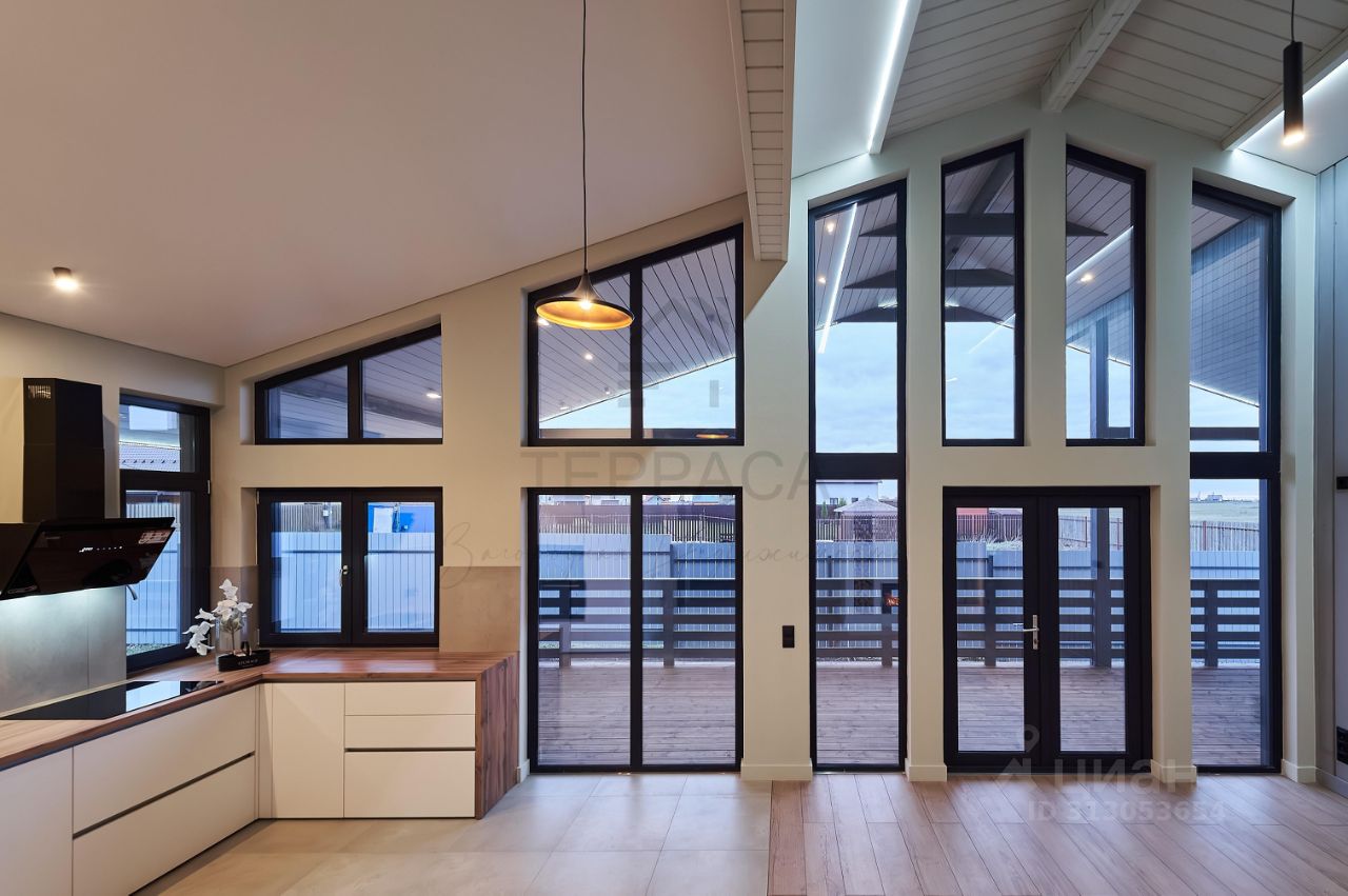 Дизайнерский проект построен с применением всех современных технологий и коммуникаций. Вас встретит: натуральная отделка с изящным сочетанием светлых и тёмных тонов, комнаты с высокими потолками 3.6 м., панорамные окна с выходом на террасу, а также дровяной камин и финская сауна для комфортного отдыха в любое время года. И всё это на ухоженном участке в инфраструктурно-развитом районе.