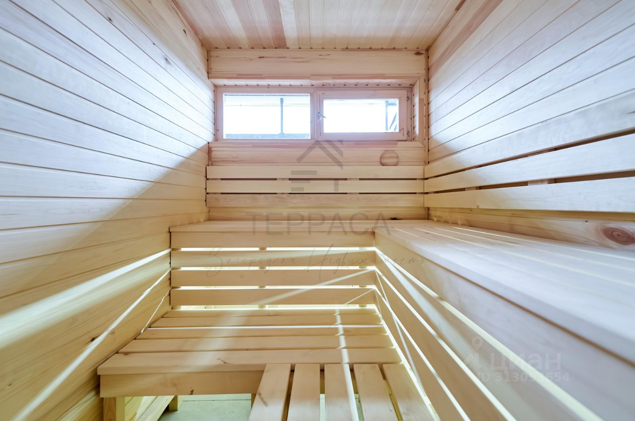 Гостиная с крутым камином и зоной под ТВ. 2 с\у в кафеле, подвесная мебель и унитазы с инсталляцией, гигиенический душ. Сауна с окном в парной и техническим трапом для слива, тропический душ с термо регулировкой, ведро для обливания холодной водой. Стиральная машина BOSH. Котельная полностью оборудована и подключена.