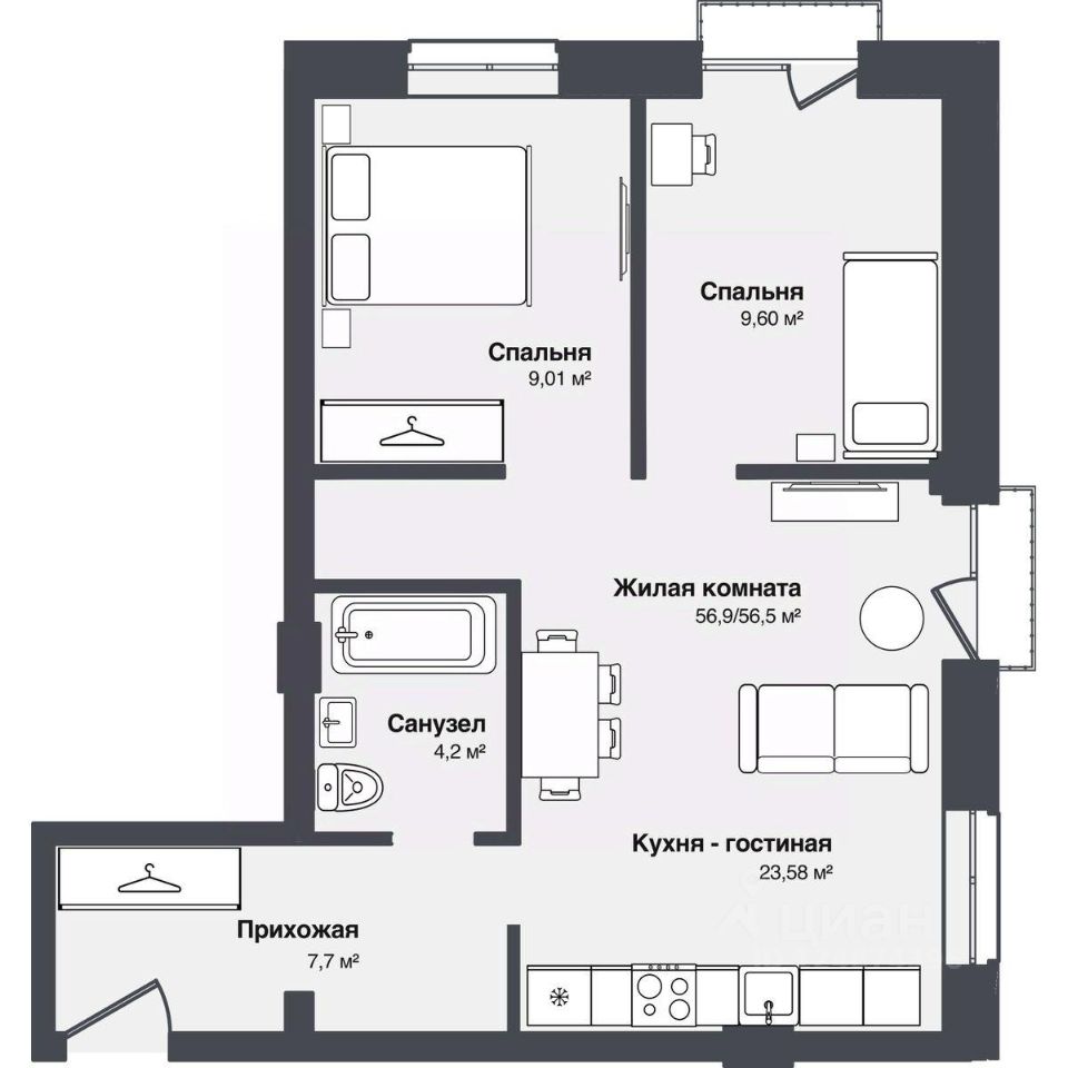 В комплексе представлены студии и 13-комнатные квартиры площадью от 30,2 до 91,9 м². Планировки продуманы для удобной жизни — просторные кухни-гостиные, террасы и панорамные окна наполняют квартиры светом.