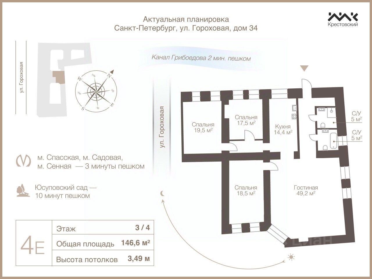 продам 4-к, Гороховая, 3438 000 000 ₽