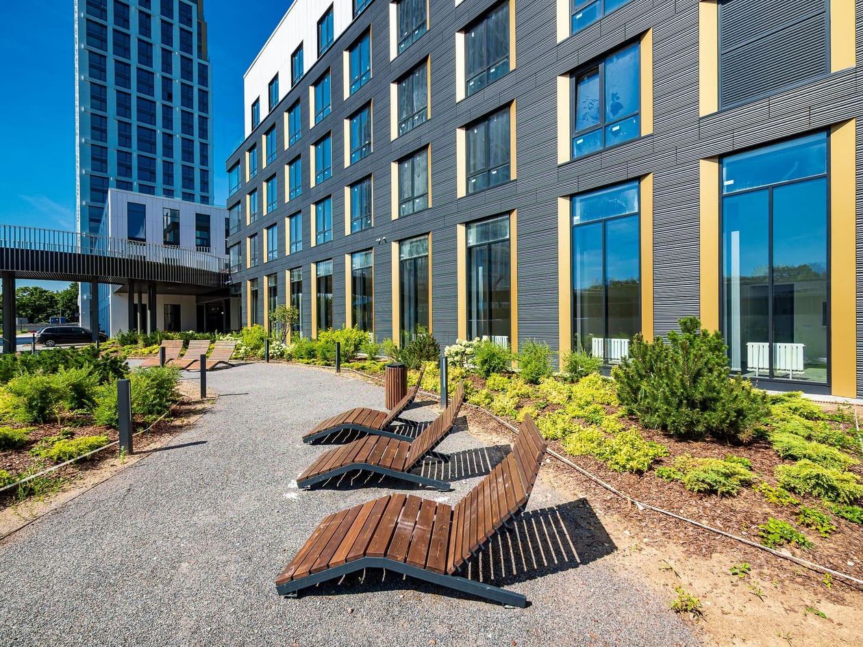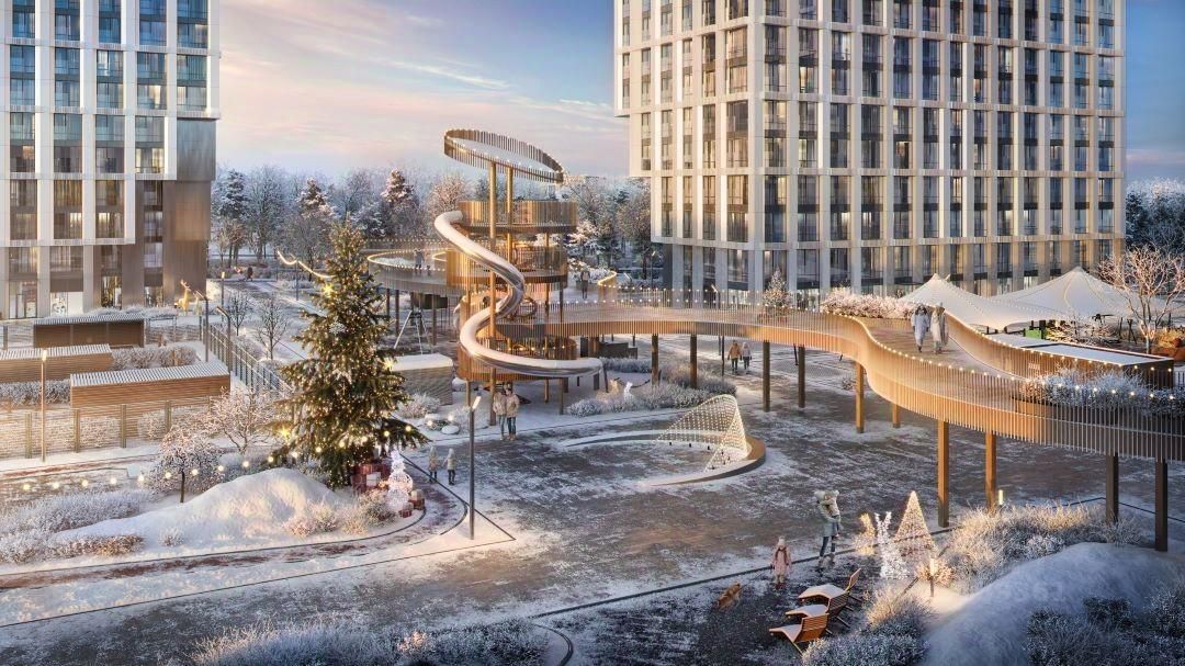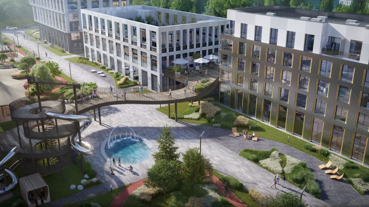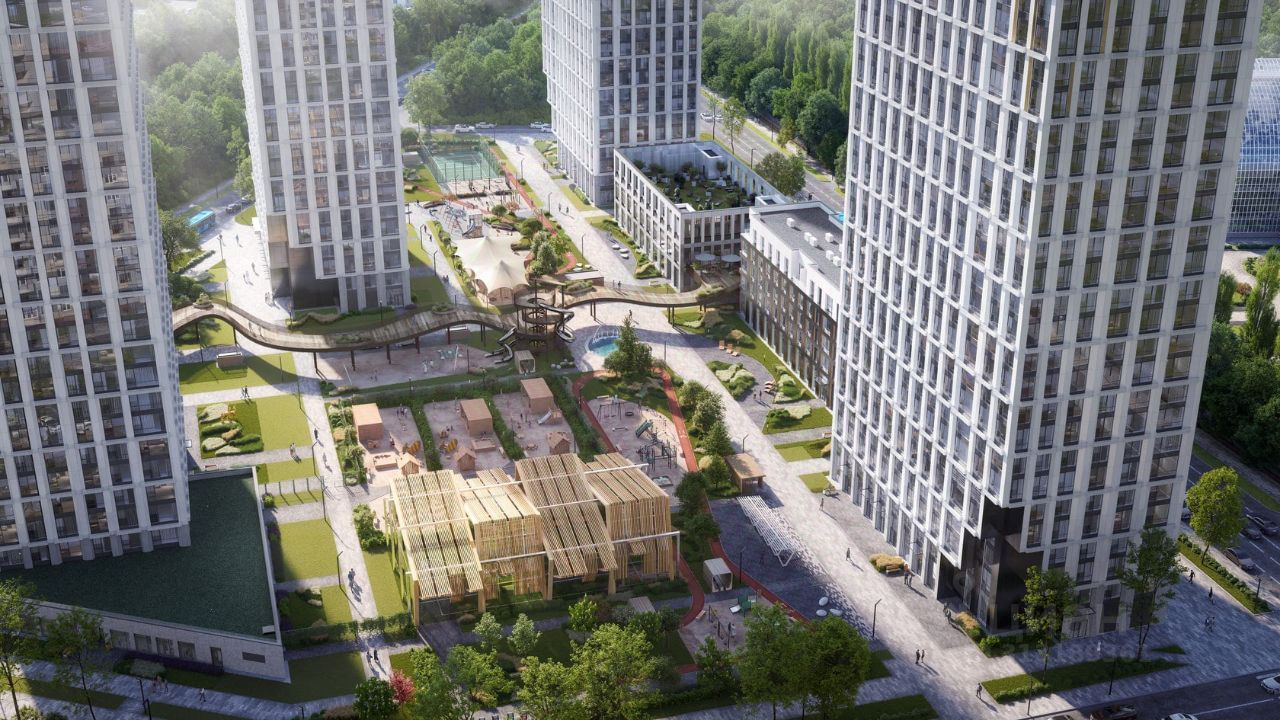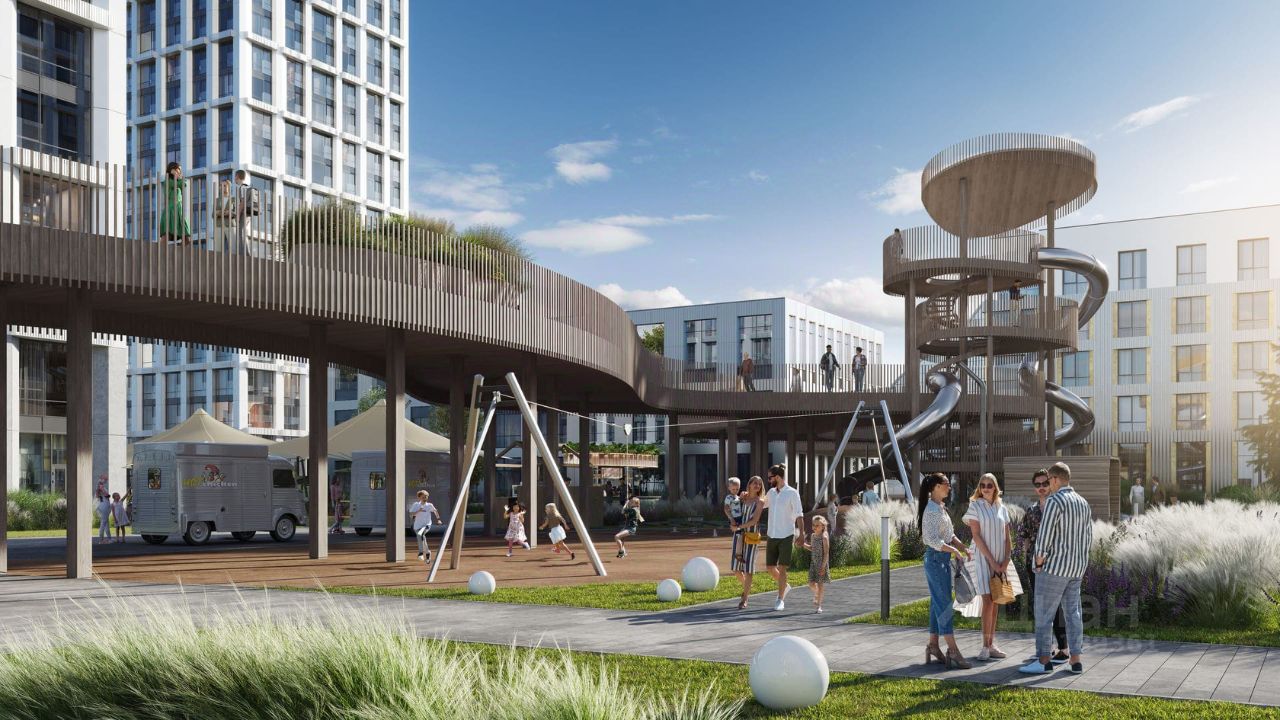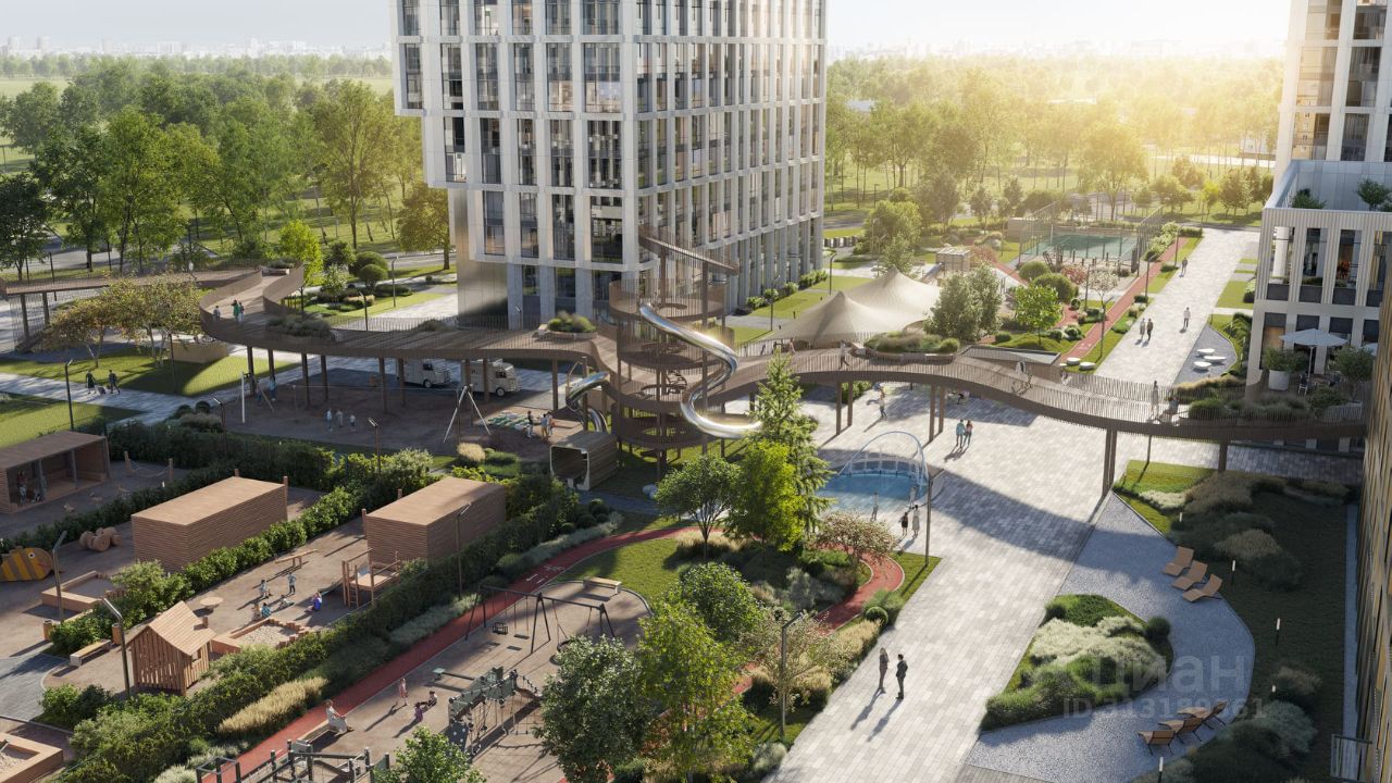 Большой выбор эргономичных планировок. Собственный двор-парк 20 000 м² с фонтаном, детскими и игровыми площадками, воркаут-зоной, живописным парящим мостом, кафе и беседками для отдыха. На территории жилого комплекса предусмотрено всё необходимое: инновационный детский сад на 100 мест, SPA-комплекс с бассейном, уютные рестораны, стритритейл и многое другое.