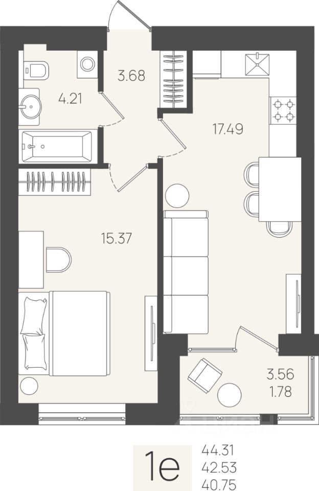 Общая площадь42,53 м2