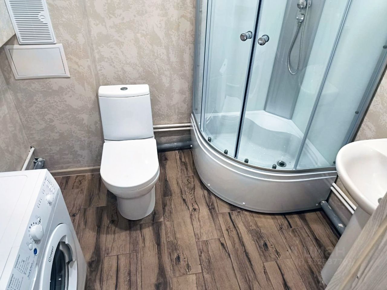 Санузел совмещенный, в кафеле. Стиральная машина-автомат, пототенцесушитель, душевая кабина. Вся инфраструктура в районе. Магазины, кафе, аптеки, пункты выдачи и т.п. - в шаговой доступности. Большой зеленый массив с озерами неподалеку.
