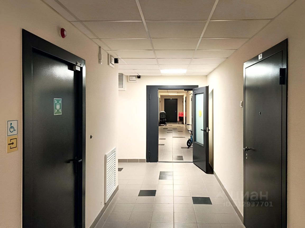Высокий 10-й этаж, два лифта: пассажирский и грузовой, домофон. Вход со двора. Окна во двор. Общая площадь квартиры 26 кв.м, жилая 16 кв.м, потолки - 2,55 м.