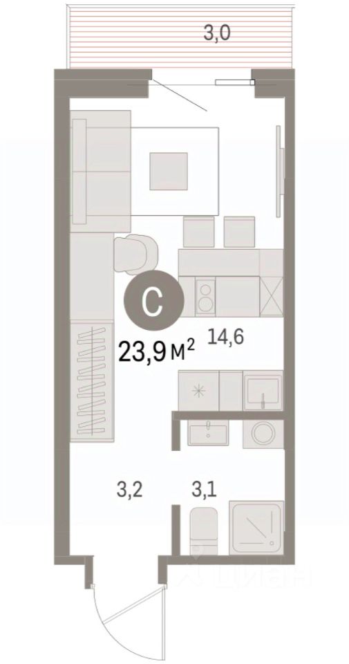 Общая площадь23,91 м2