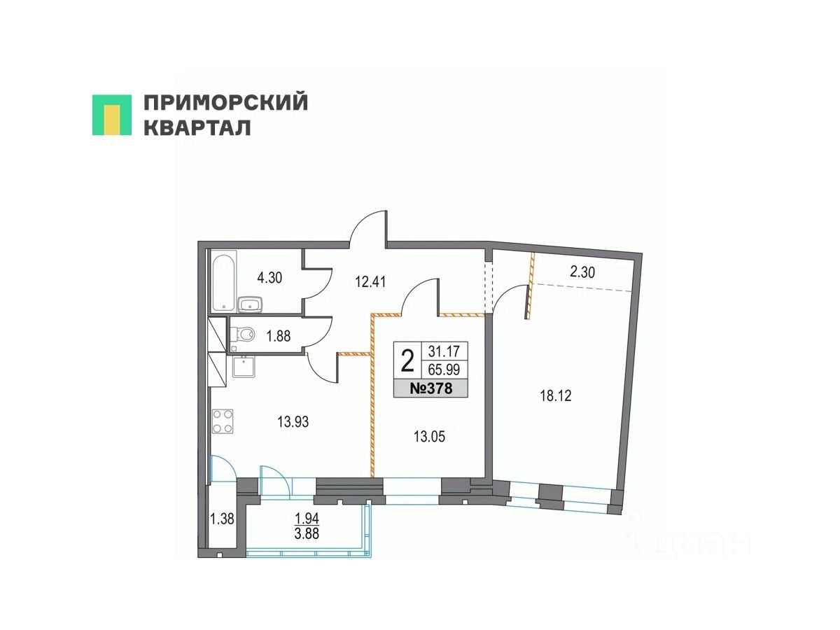 Продается 2 - комнатная квартира общей площадью 65.99 кв.м., на 10 этаже в построенном и заселенном корпусе 41 (год сдачи: 2024 г.) Квартиры в ЖК ''Приморский квартал'' продаются напрямую от застройщика ''Мегалит - Охта Групп'' по договору купли-продажи. Приморский квартал - проект современной квартальной застройки комфорт-класса в 400 метрах от станции метро ''Пионерская''. Квартал включает 13 жилых домов, высотность которых варьируется от 12 до 25 этажей, а также различные объекты социальной инфраструктуры. Проект реализуется двумя партнерами инвестиционно-строительными компаниями ''Мегалит'' и ''Охта Групп''. В состав квартала войдут три детских сада на 460 мест и общеобразовательная школа на 1500 мест.