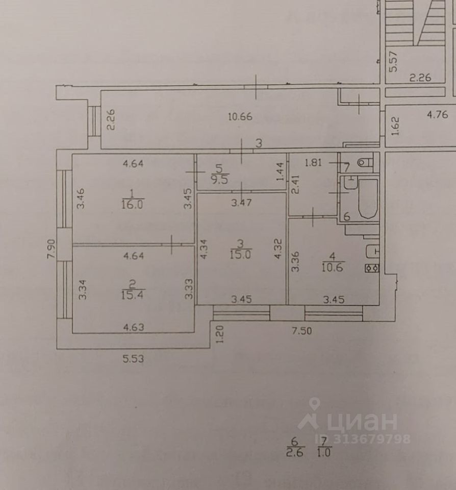 Квартира расположена на 1-м этаже дома 137 серии. Окна на улицу, но дом стоит далеко от проезжей части. В квартире удачная планировка, все комнаты почти одинакового метража, кухня 10,6 кв.м. и два просторных коридора, высота потолков 2.65 м.