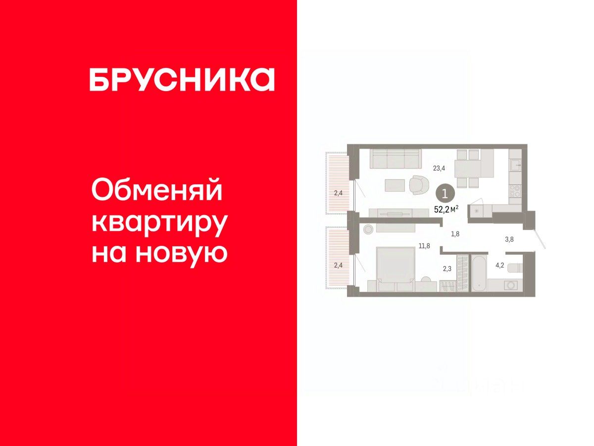 Однокомнатная квартира с предчистовой отделкой в ЖК ''Зарека'' на 5 этаже. Общая площадь: 52.24 кв.м., жилая: 11.8 кв.м., площадь просторной кухни-гостиной: 23.4 кв.м. Все окна выходят на одну сторону. В квартире два балкона, один совмещенный санузел. Высота потолков 2.7 м.
