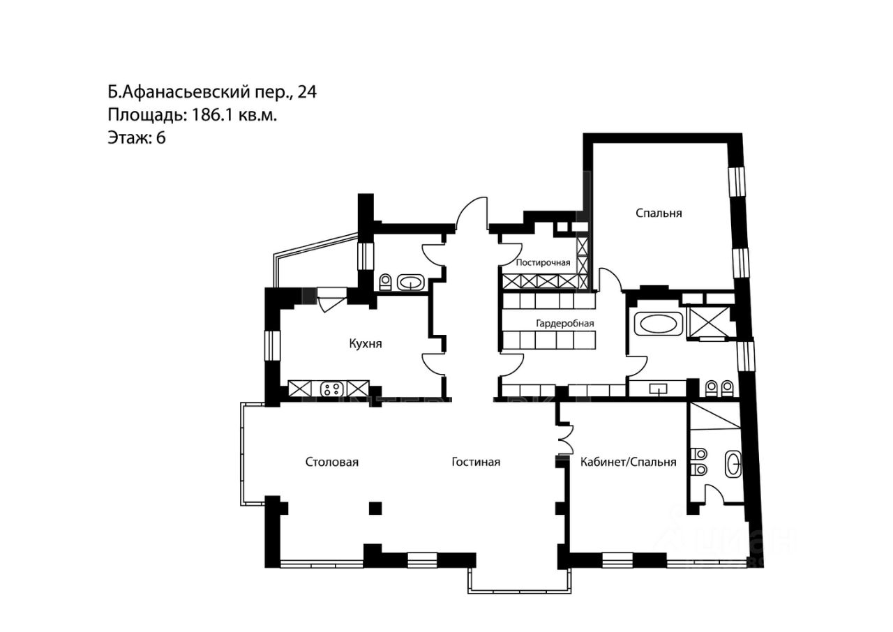 ID 60015: Эксклюзив. Только в Intermark. ЖК Афанасьевский. В современном жилом комплексе в уютном переулке в двух шагах от Арбата предлагается изысканная квартира 186 кв. м с двумя спальнями. Одно из главных достоинств квартиры изящный дизайн, соединивший в себе непревзойденный стиль, функциональность и высочайшее качество материалов. Дизайн-проект принадлежит всемирно известному итальянскому архитектору Джеймсу Каваньяри. Квартира полностью меблирована и декорирована. Высокий уровень комфорта также обеспечивают самые современные технические системы: кондиционирование, скоростной интернет и фильтрация воды. Окна ориентированы на три стороны света. Благодаря удачной конфигурации дома и расположению квартиры на 6-м этаже, все комнаты наполнены естественным светом.