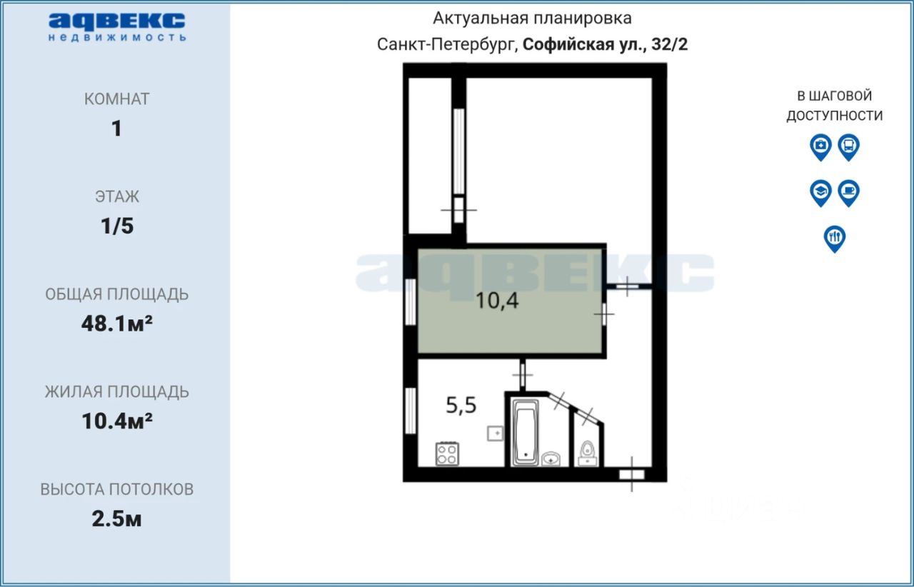 ID: 1787539 Продается комната в двухкомнатной квартире, расположенной по адресу: Санкт-Петербург, Фрунзенский район, улица Софийская, дом 32/2. Объект находится на первом этаже блочного многоквартирного дома, построенного в 1966 году.