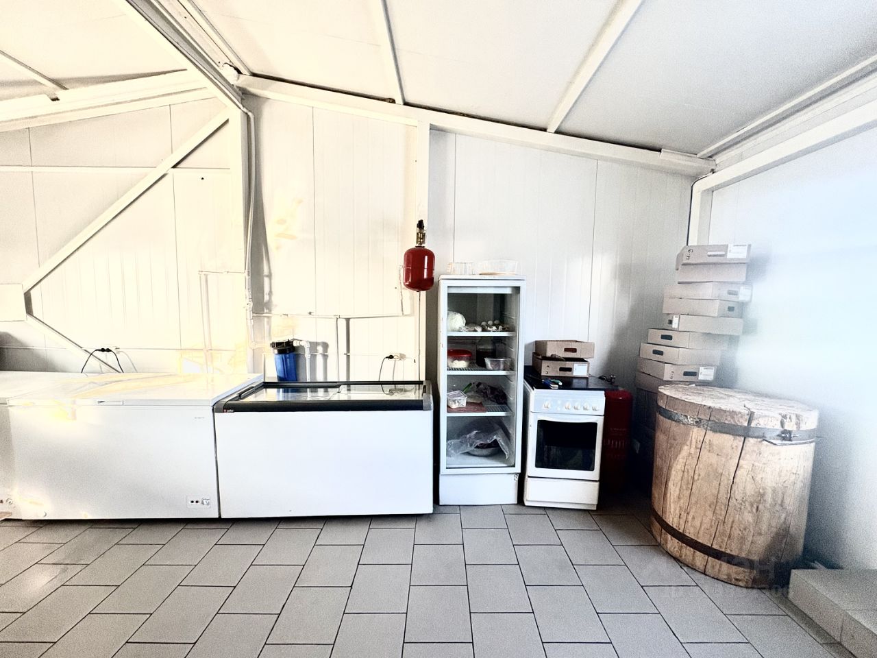 Электричество 100 квт- есть разрешение на увеличение мощности до 150 квт Газ газгольдер пропан. Отопление - есть. Вода центральная. Канализация - выгребная яма. Котельная Так же есть комната отдыха.