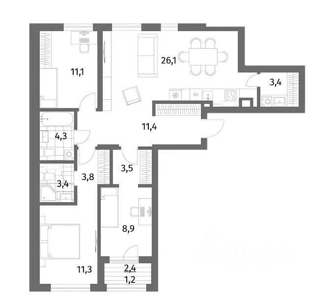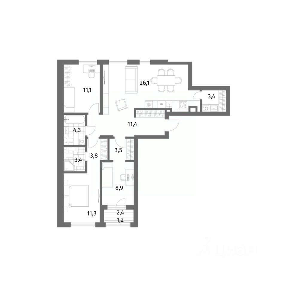 продам 3-к, Имени Антона Пошкуса, 2 корп. 19 724 000 ₽