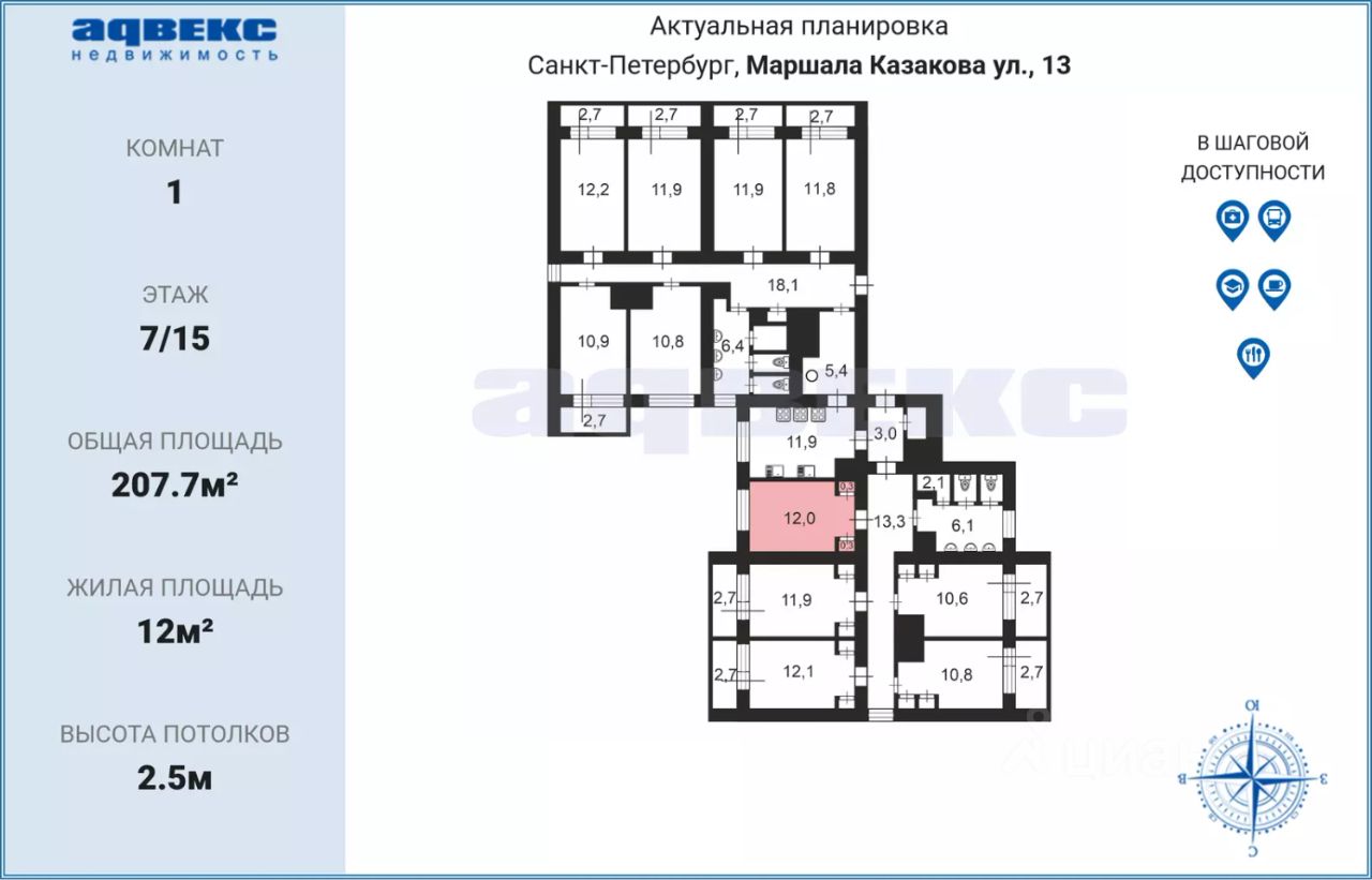 продам комнату, Маршала Казакова, 131 850 000 ₽