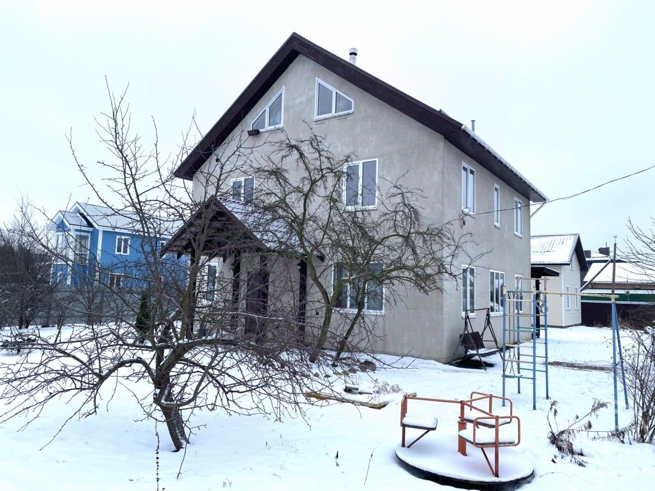 Дом - 165.2 м, 3 этажа Фундамент - залита ж/б плита, наружные стены - утеплены, штукатурка. Кровля- металлочерепица, внутренняя отделка- гипрок, штукатурка. В доме есть все городские коммуникации: - отопление -газовый котел - центральный водопровод, - городская канализация - электричество 15кВт