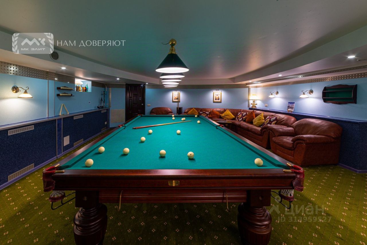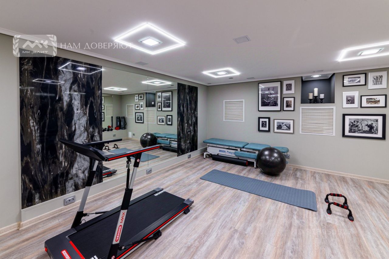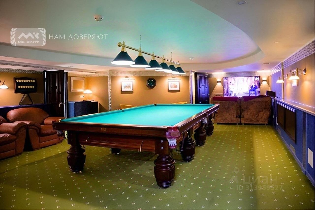 1-й этаж SPA-зона • Финская баня, хаммам, подогреваемый бассейн • Контрастная бочка, душевые, санузел • Техническое помещение для оборудования Нижний уровень зона отдыха и развлечений • Просторная бильярдная с лаунж-зоной, мини-бар, шахматы • Уютная спальня с дополнительным диваном • Спортивный зал для активного отдыха • Полноценная кухня и хозяйственное помещение с отдельным входом • Стереосистема, телевизоры в комнатах, оборудованный массажный стол, PlayStation 4
