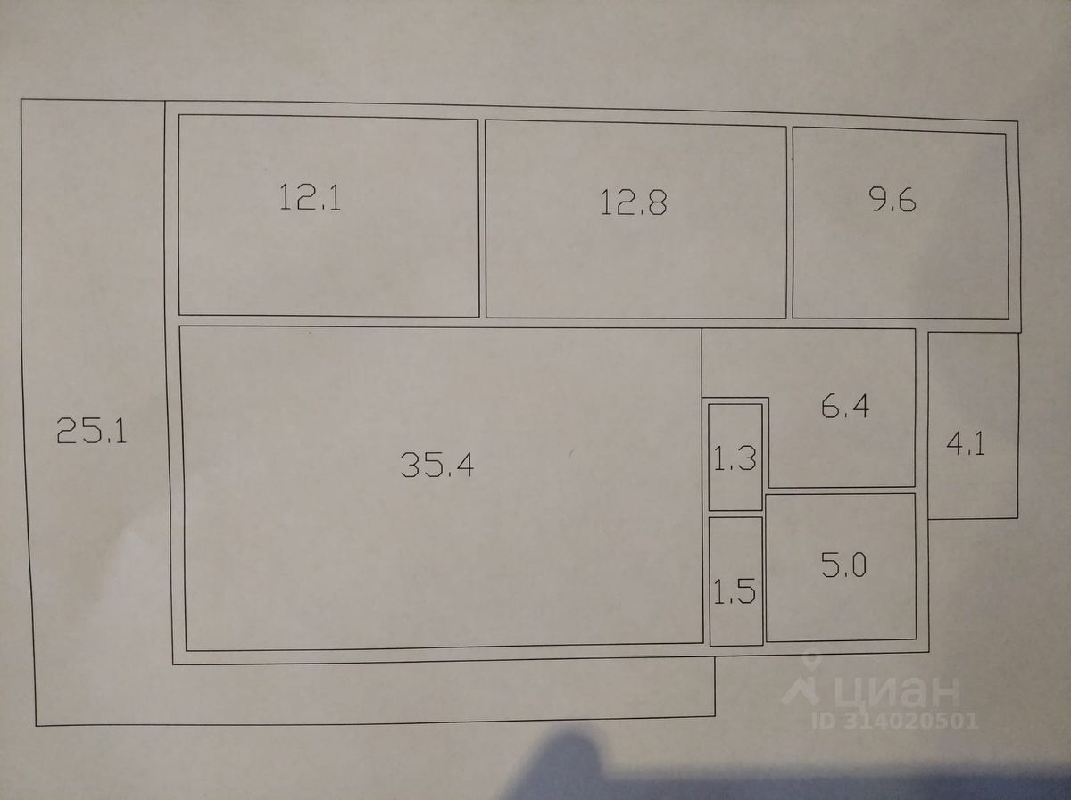 Комнаты : 12,1+ 12,8+9,6 ( все изолированные с отдельными входами ) Кухня - гостиная 35,4