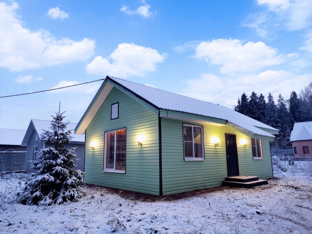 Колодец с питьевой водой(6 колец),все коммуникации в доме. Септик автономный на 4м с полем рассеивания. Установлена новая кухонная зона и частичная мебель, всё остаётся новому собственнику. Участок ИЖС 8 соток,позади имеется забор,по правую сторону Березовая роща.