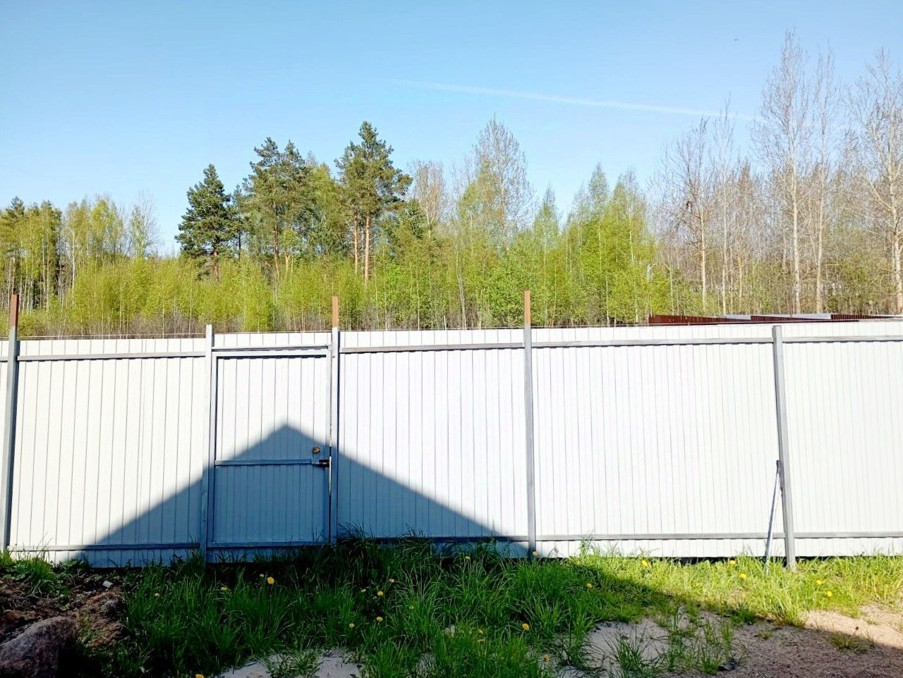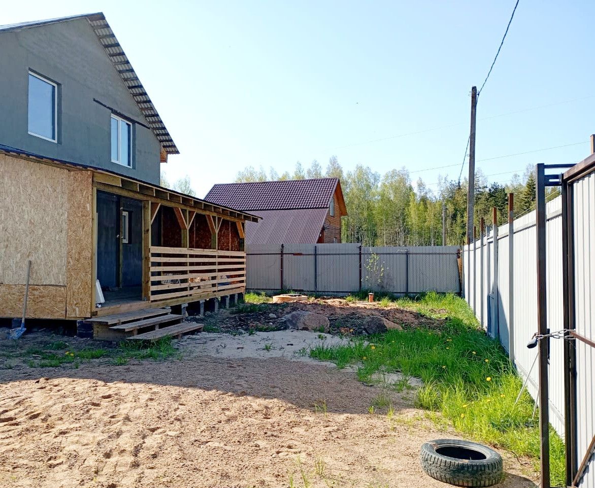 Участок огорожен качественным сплошным забором с откатными воротами и двумя калитками. Подъезд к дому — щебенка.