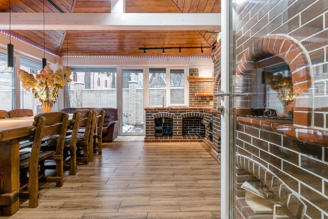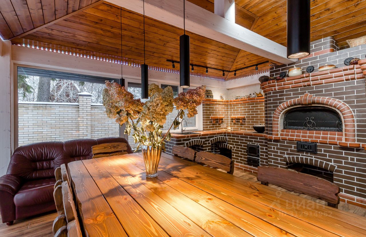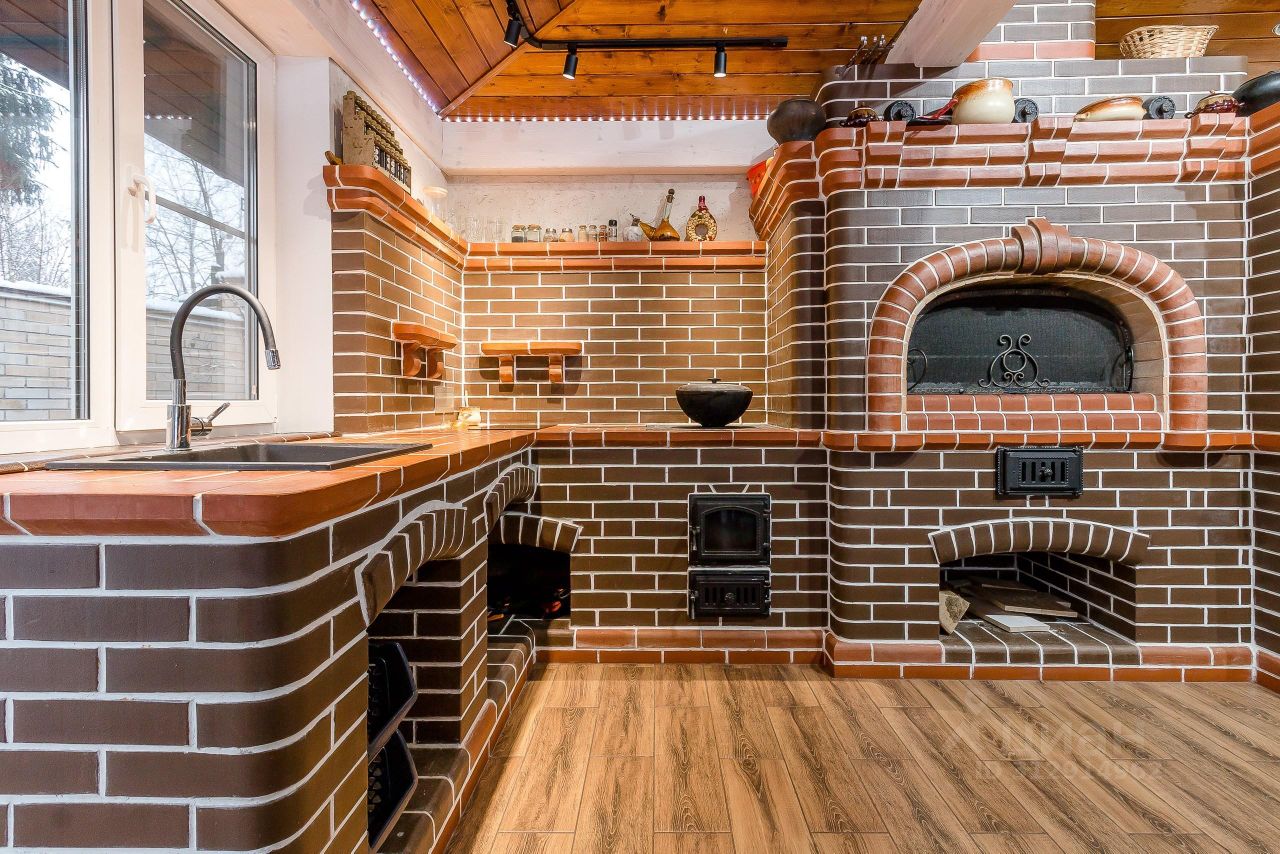 Планировка: 1 этаж: - Прихожая с системой хранения. - Гостиная с зоной отдыха (ТВ и диван). - Кухня с обеденной зоной, островом, газовой плитой, духовым шкафом и двухкамерным холодильником. - Зал для барбекю с авторским печным комплексом: русская печь, мангал, печь под казан и рабочая зона. - Предбанник, русская баня, купель, санузел с душем и каткой для обливания. - Постирочная комната, закрытая и открытая веранды, котельная.