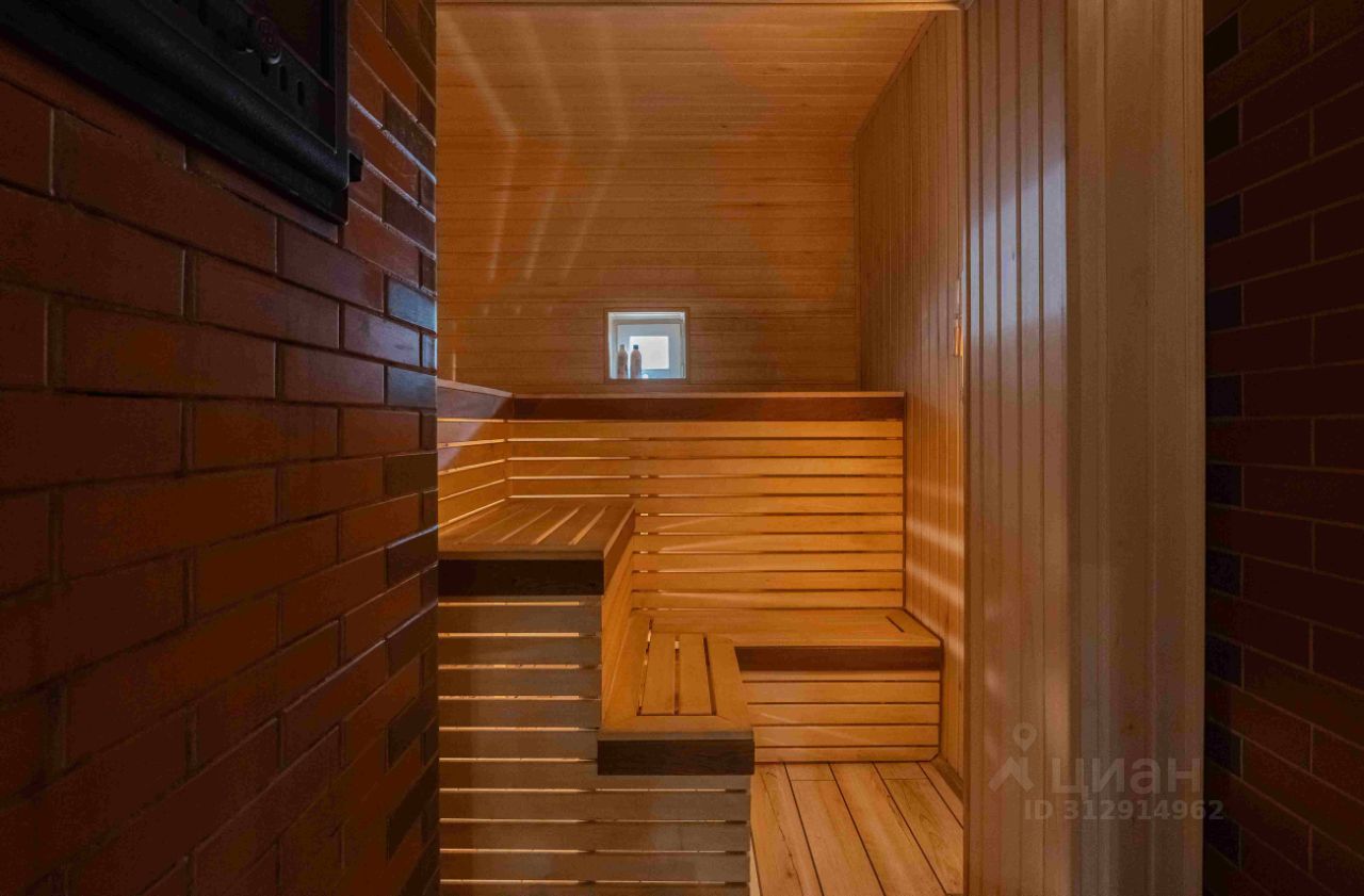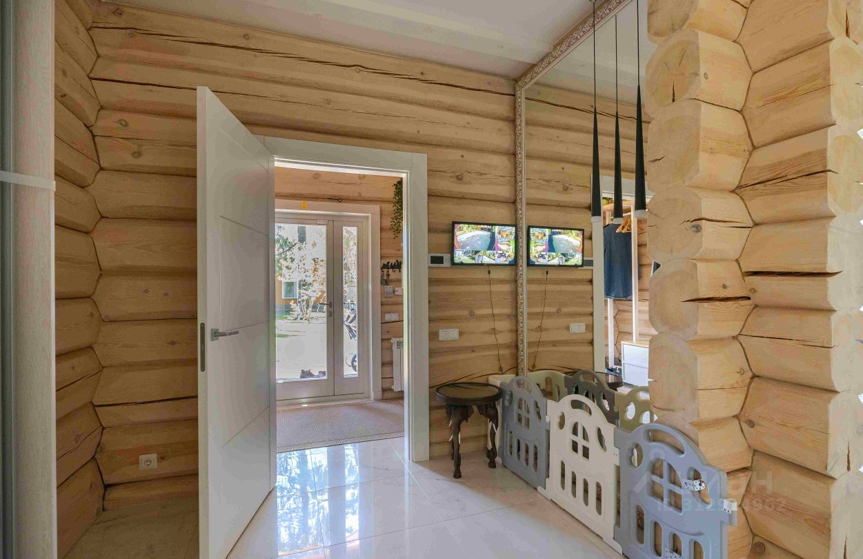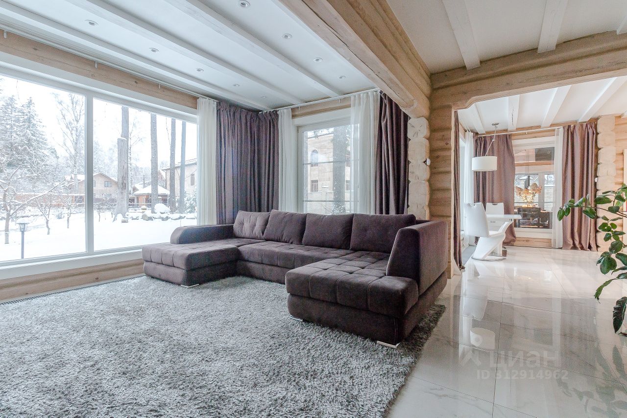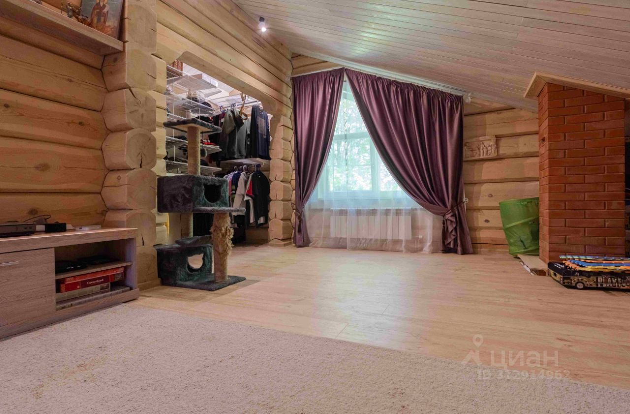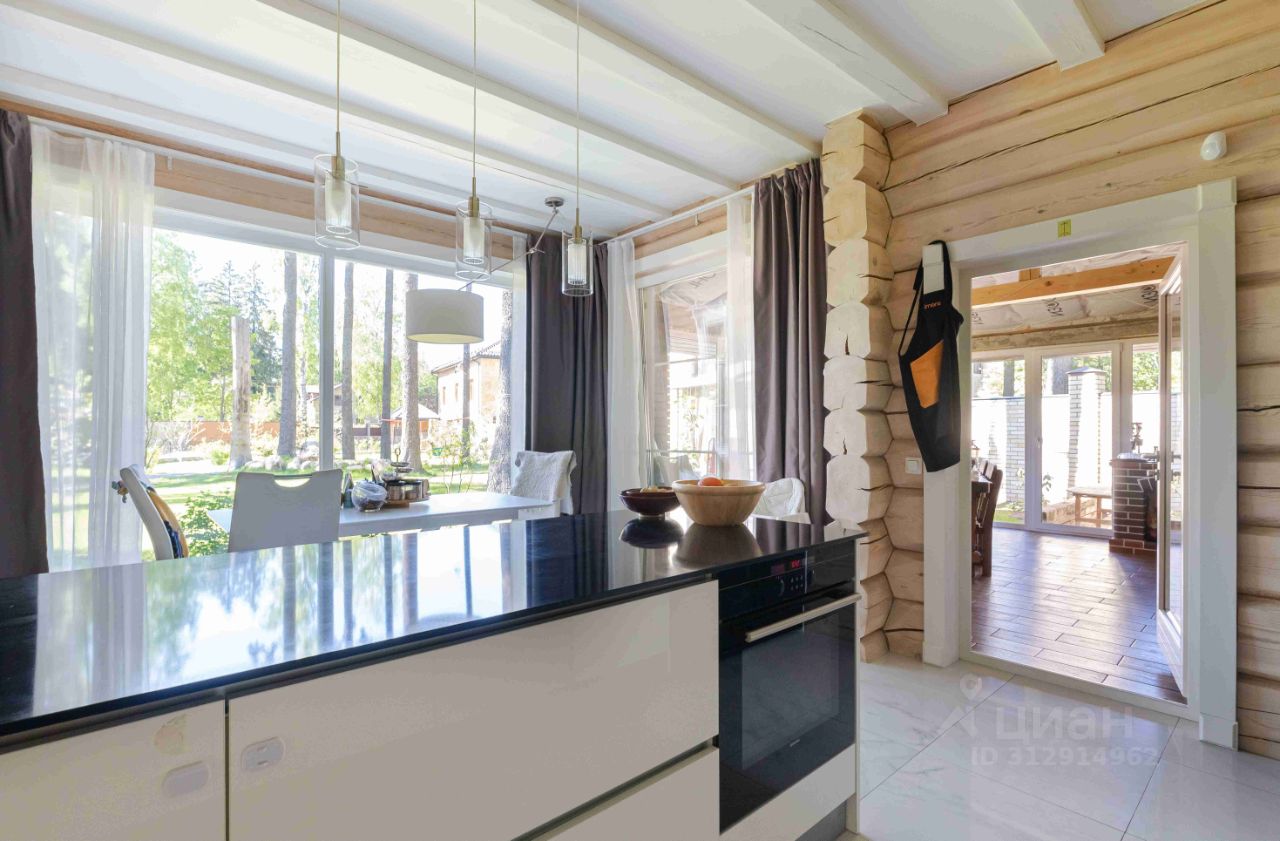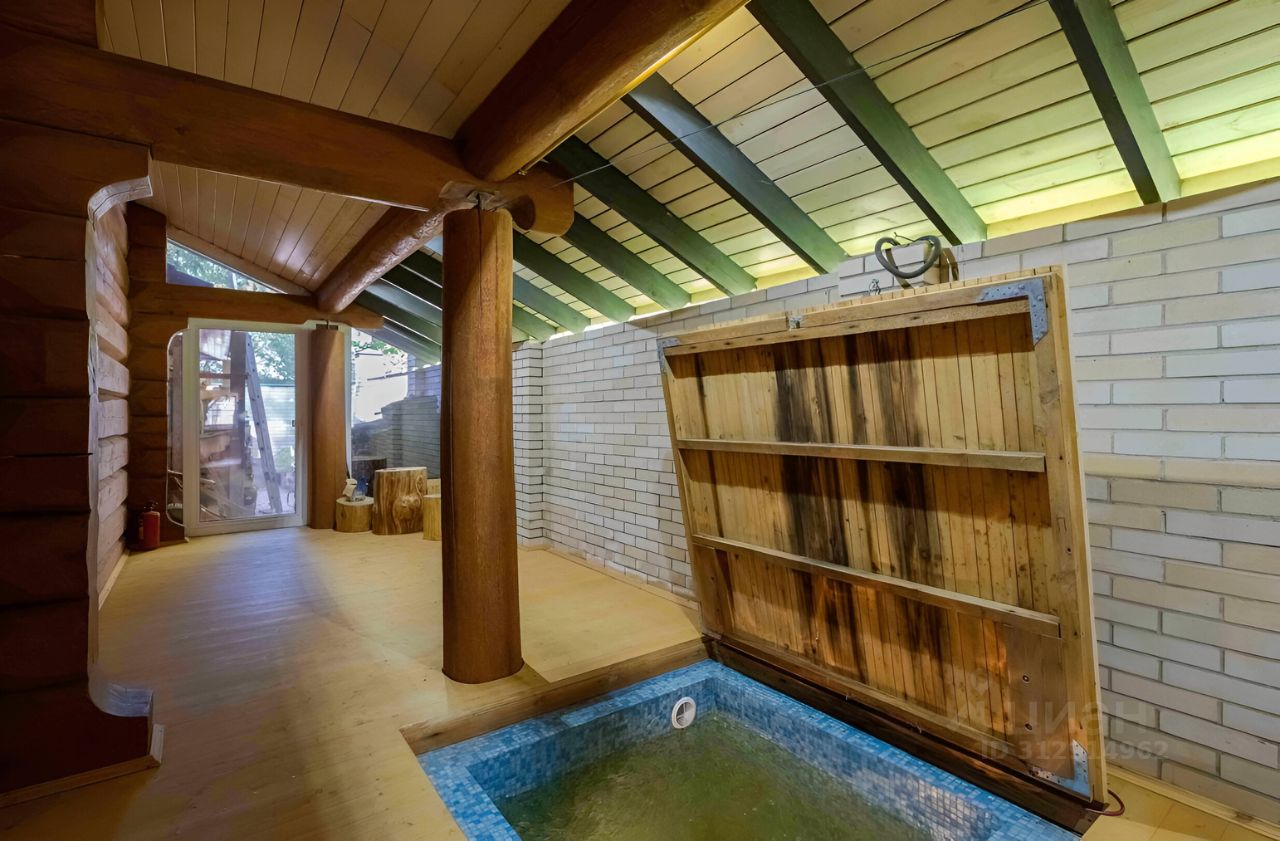 Основной дом: - Площадь: 262 м² - Фундамент: тёплая ж/б плита (350 мм). - Стены: лафет из архангельской сосны (диаметр 400-450 мм). - Внутренняя отделка: шлифовка, окраска белёным воском (белёный дуб), швы обработаны немецким акриловым герметиком. - Полы: первый этаж — плитка из итальянского керамогранита, тёплый водяной пол, второй этаж — тёплый пол в санузле (керамогранит). - Лестница: бук с авторскими коваными перилами. - Окна: деревянные (лиственница) с тройным стеклопакетом, немецкая фурнитура, панорамные окна на первом этаже. - Оснащение: умный дом, климат-контроль, встроенная мебель и техника, интернет (оптоволокно), видеонаблюдение, сигнализация (вневедомственная охрана).