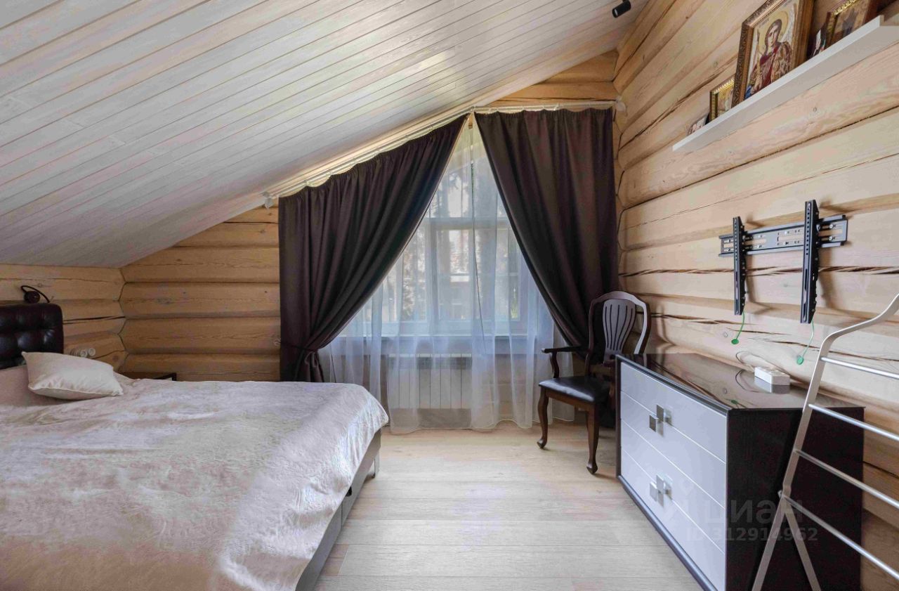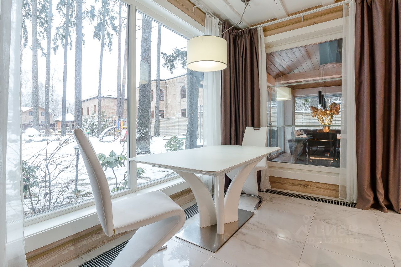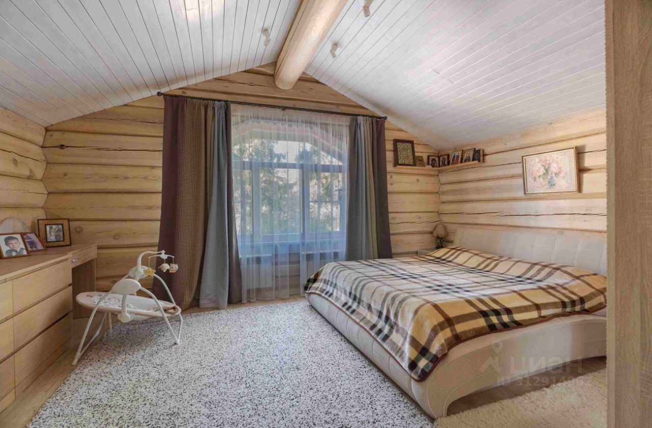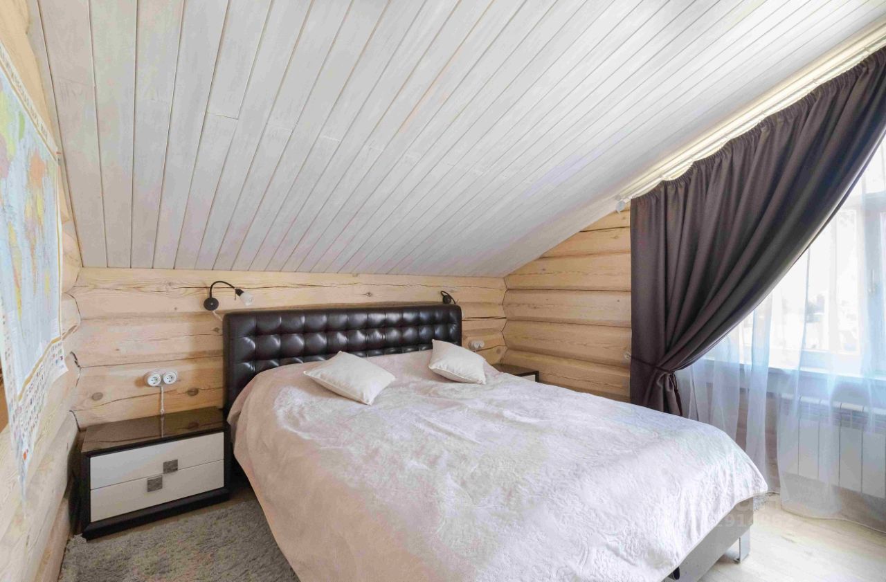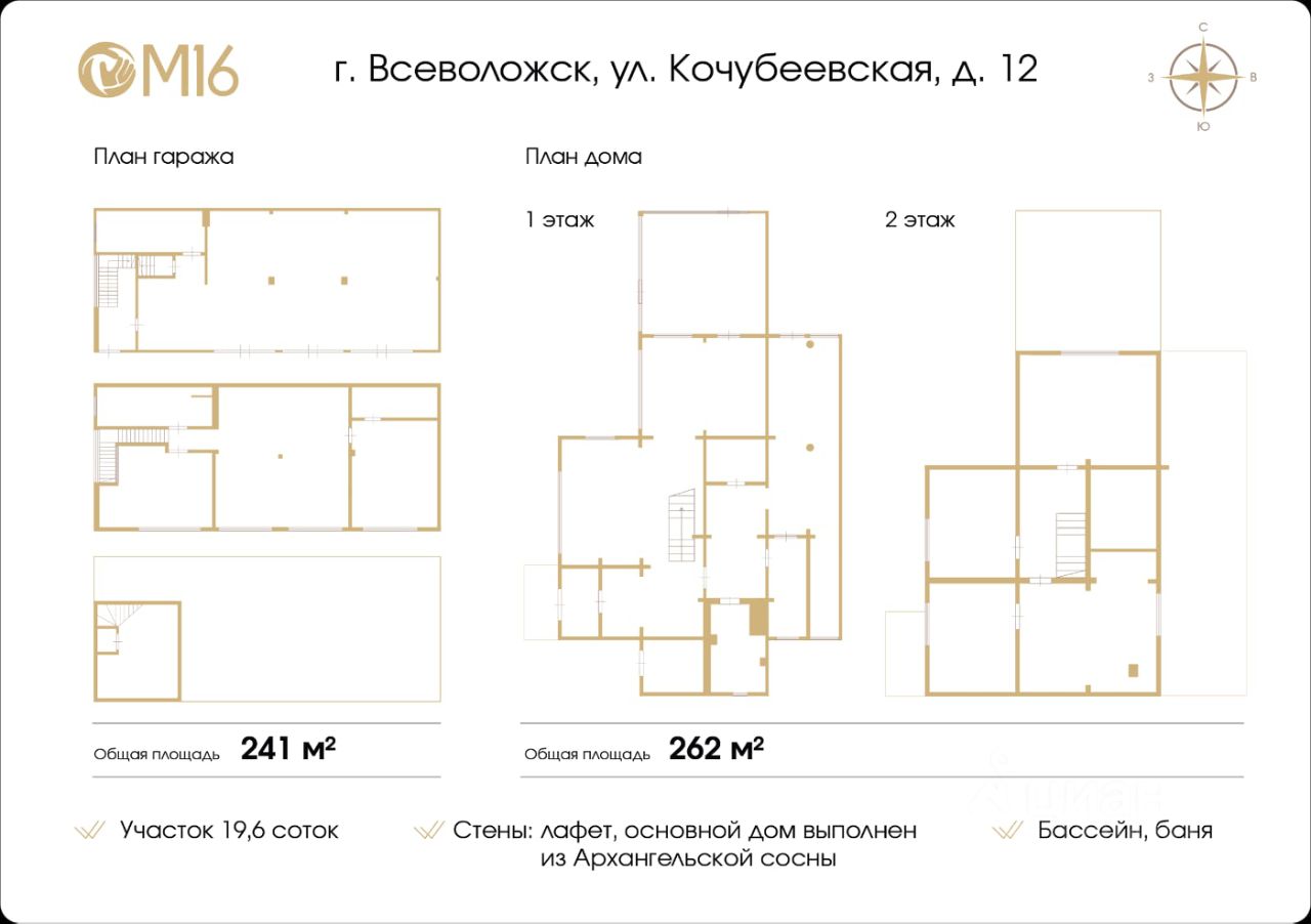 Основной дом: - Площадь: 262 м² - Фундамент: тёплая ж/б плита (350 мм). - Стены: лафет из архангельской сосны (диаметр 400-450 мм). - Внутренняя отделка: шлифовка, окраска белёным воском (белёный дуб), швы обработаны немецким акриловым герметиком. - Полы: первый этаж — плитка из итальянского керамогранита, тёплый водяной пол, второй этаж — тёплый пол в санузле (керамогранит). - Лестница: бук с авторскими коваными перилами. - Окна: деревянные (лиственница) с тройным стеклопакетом, немецкая фурнитура, панорамные окна на первом этаже. - Оснащение: умный дом, климат-контроль, встроенная мебель и техника, интернет (оптоволокно), видеонаблюдение, сигнализация (вневедомственная охрана).