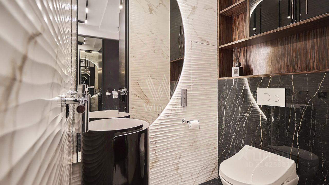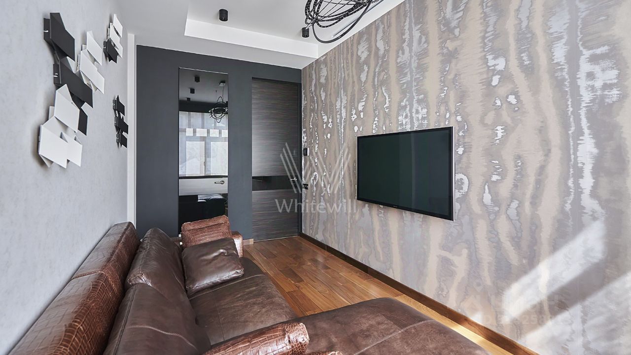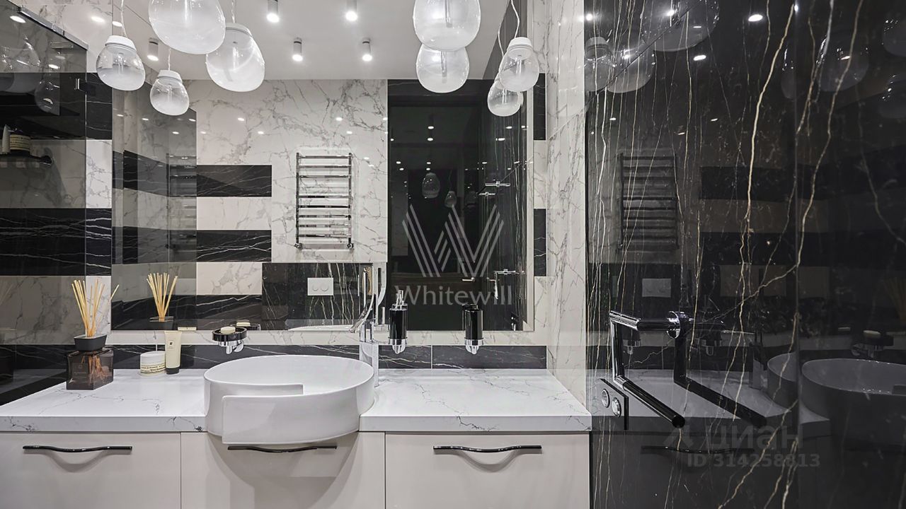 На полу инженерная доска, каменные подоконники, натуральный камень в санузлах.