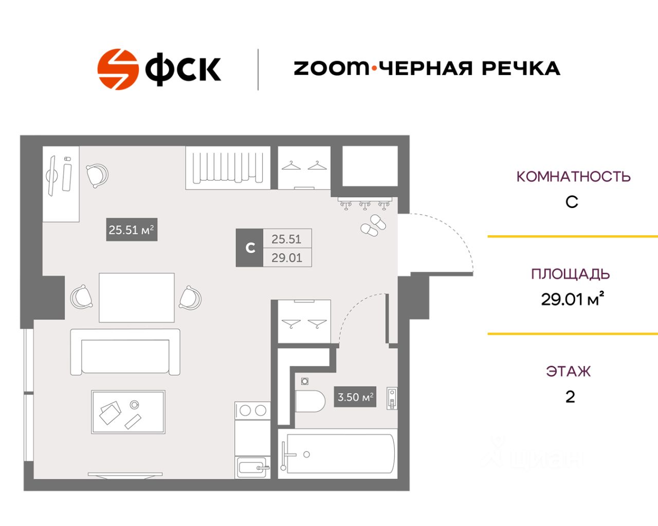 продам 1-к, Коломяжский проспект, 47 764 381 ₽