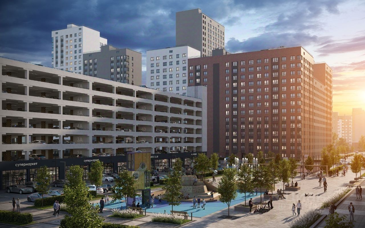 Уже сданы: один дом, прогулочный бульвар и многоуровневый паркинг. Сейчас строятся: Дом 1 (сдача во 2 квартале 2026 г.) и Дом 3 (сдача во 2 квартале 2028 г.)